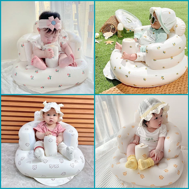 Built in Air Pump Baby Inflatable Seat Infant Baby 3-36 Month Sitting Up Armchair Foldable Children Bathing Chair Floor Seater