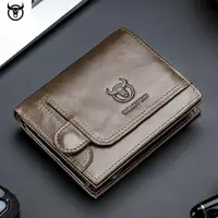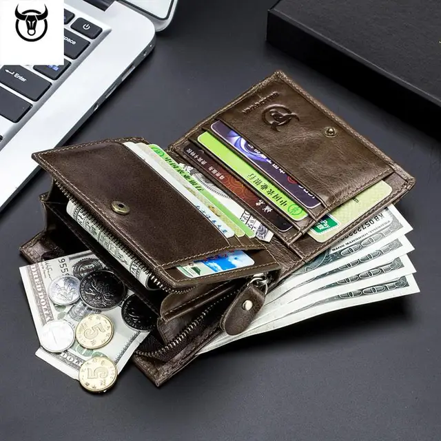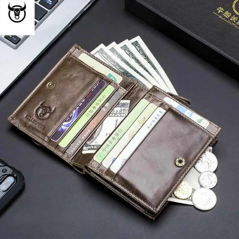CONTACT'S HOT Genuine Crazy Horse Cowhide Leather Men Wallet Short Coin Purse Small Vintage Wallets Brand High Quality Designer