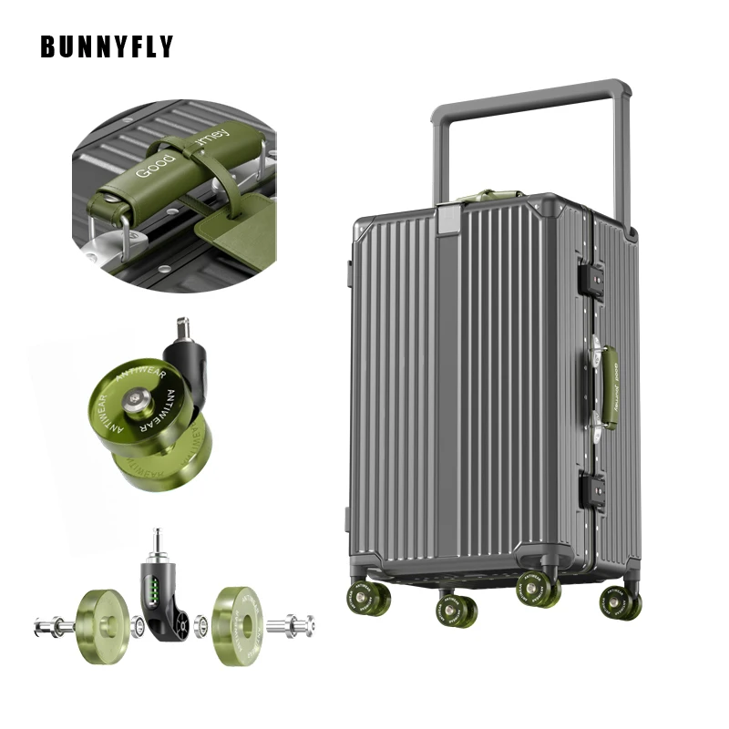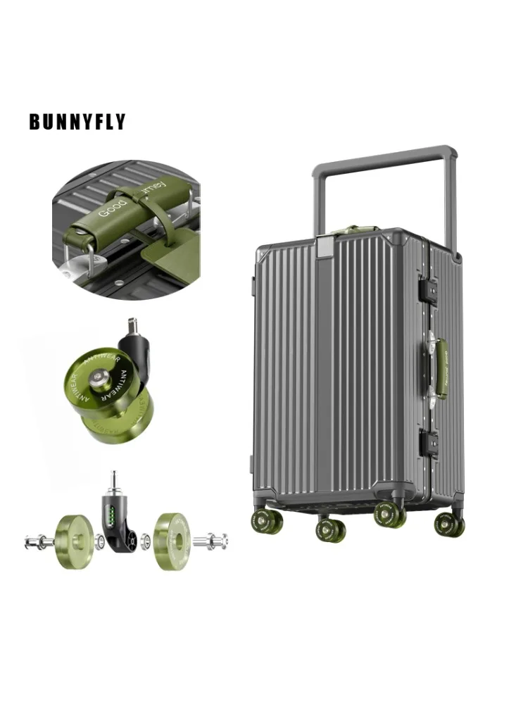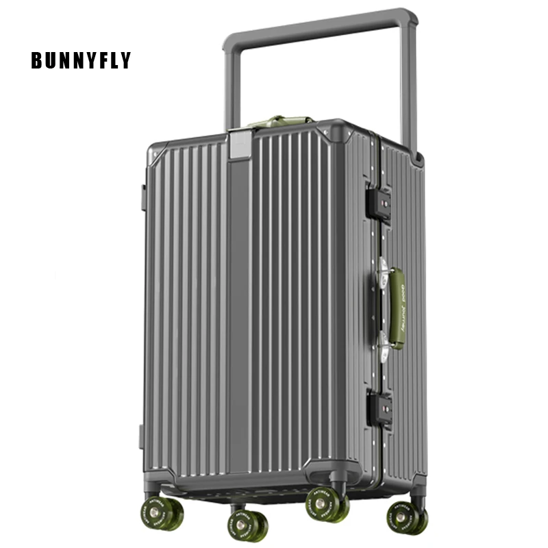 BunnyFly Suitcase Wide Handle Travel Suitcase Men 20 24 Carry-On Luggage Women PC Aluminum Frame Trolley
