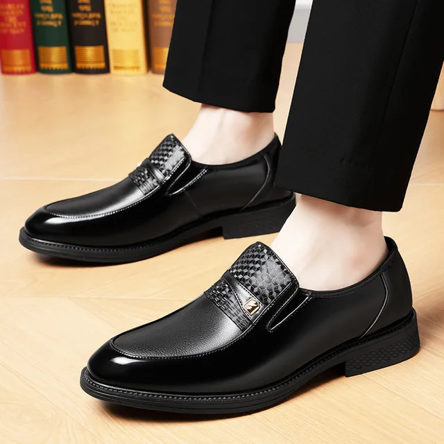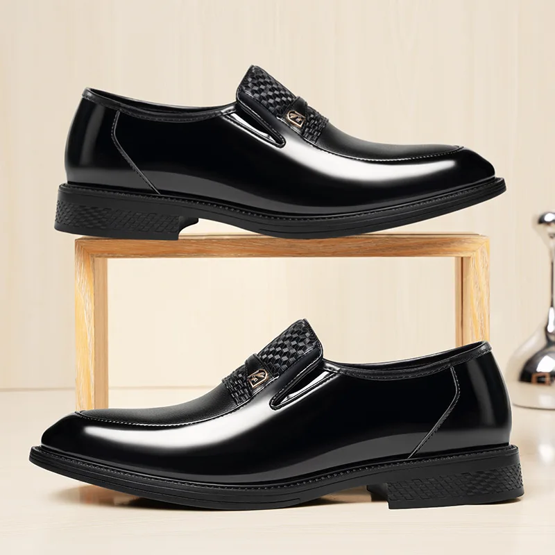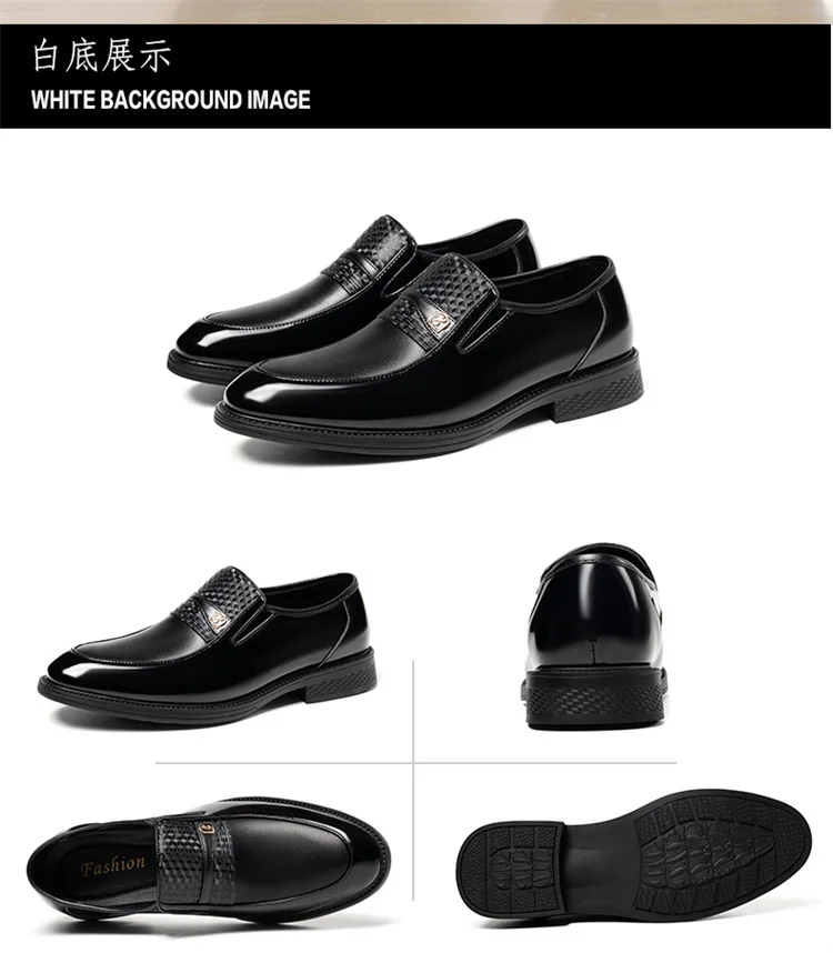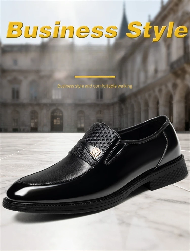 WinterFleece-Lined Men's Casual Leather Shoes 10cm Top Layer Cow Leather Sports Invisible Height Increasing Shoes Rubber Outsole