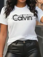 Calvin Women's T-Shirt Leisure Fashion Short Sleeve Cotton Tees High Quality Comfortable Brand T-shirt Summer Streetwear Y2k Top