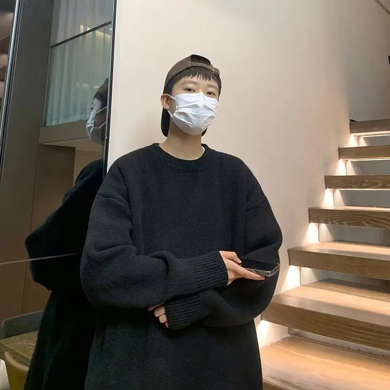 Thiened Fce Knitted Sweater for Boys Autumn Winter Faion Brand Junior High School Students Big Kids Knitted Base irt