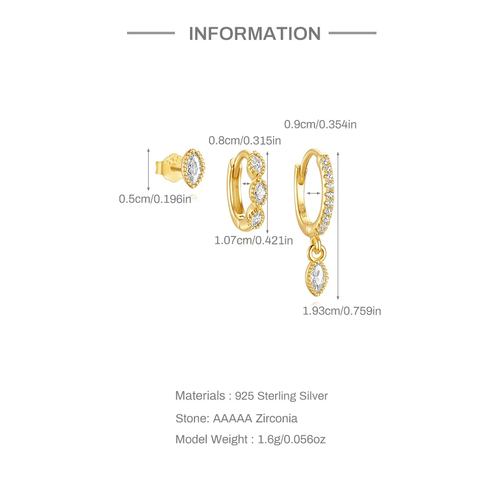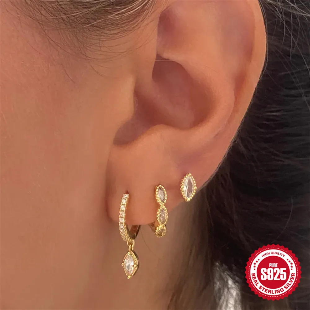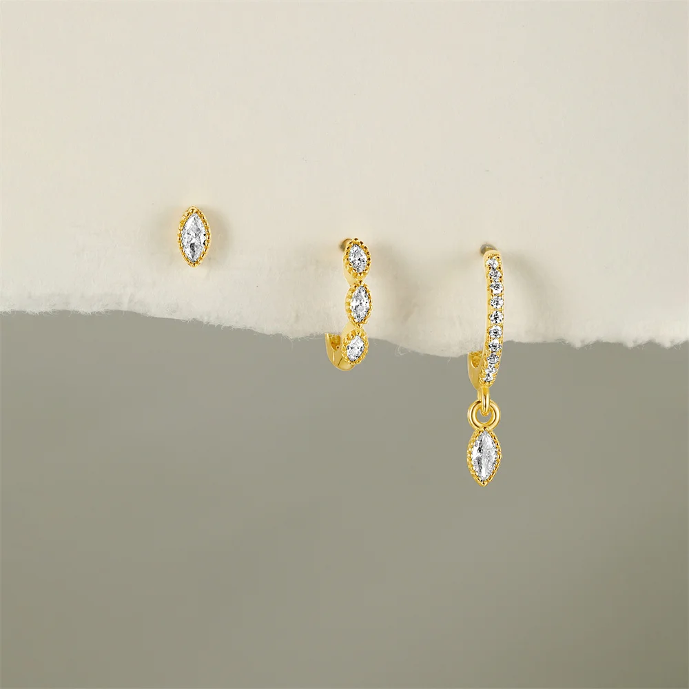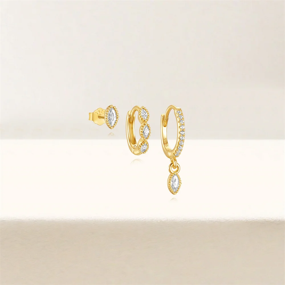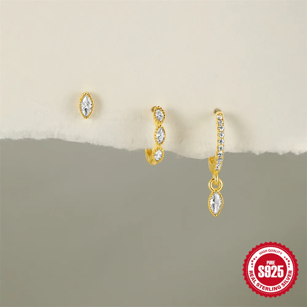 CANNER 3PCS Oval Shaped Horse Eye Zircon 925 Sterling Silver Earrings Set For Women 18K Gold Ins Minimalist Earring Fine Jewelry