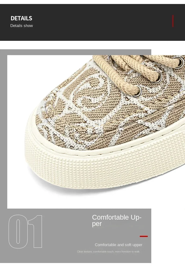 Canvas Sneakers Men Fashion Spring Autumn Casual Platform Lace Up Flats Shoes Non-slip Wear-resistant