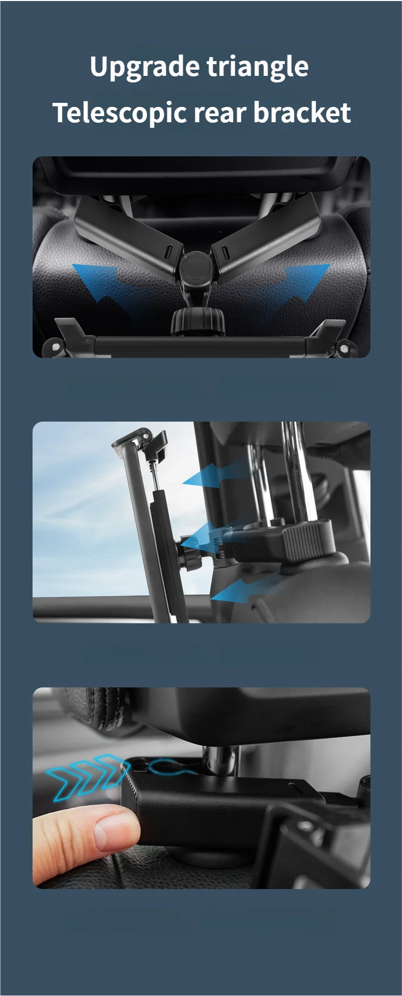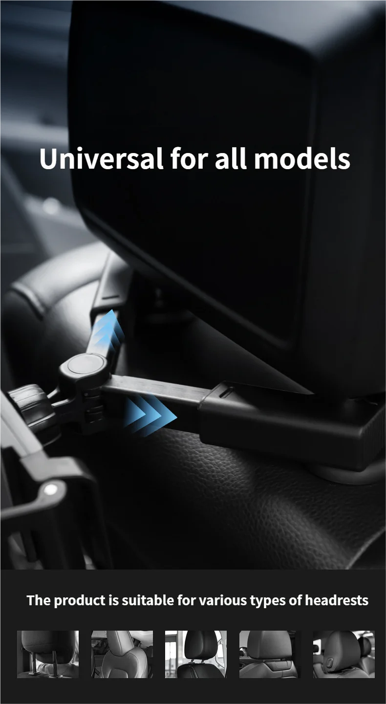 1. Upgraded triangular telescopic support arms, compatible with various headrests and quick installation.
