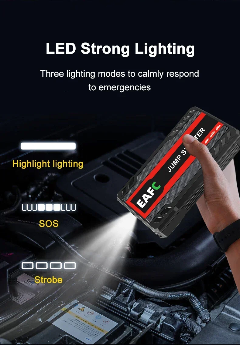 Car Jump Starter 2000A/1200A/600A Battery Charger Emergency Power Bank Booster with LED Lighting Starting