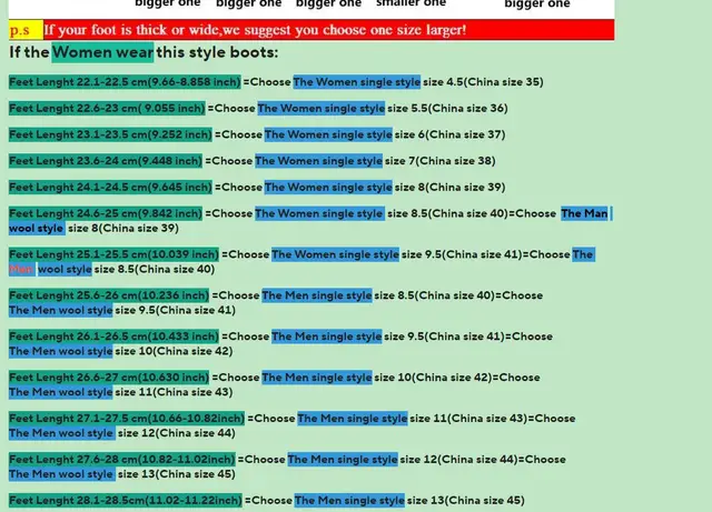 Feet Lenght 27.1-27.5 cm(10.66-10.82inch) =Choose The Men single style size 11(China size 43)=Choose The Men wool style size 12(China size 44)
