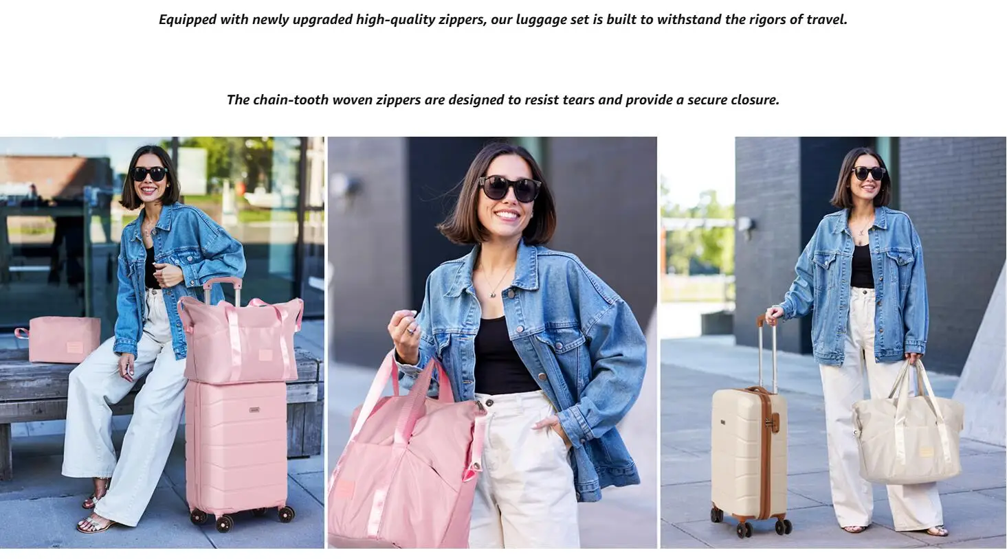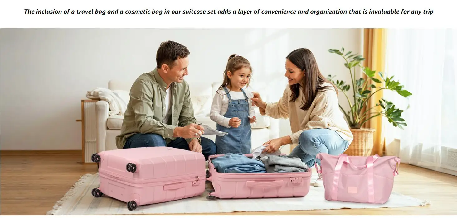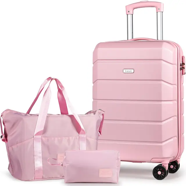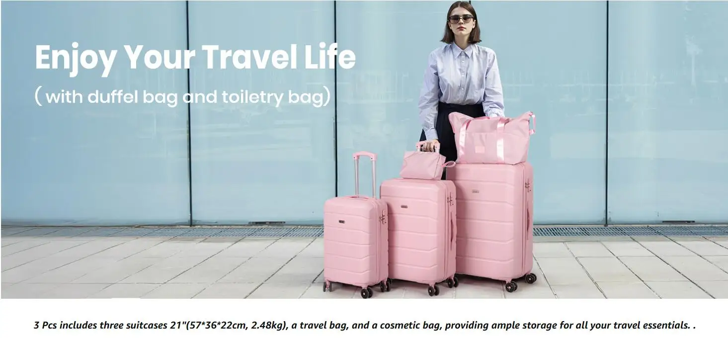 3-Piece Luggage Set: The 3 pcs includes a 21″ carry-on (57x36x22cm 2.48kg), a travel bag, and a cosmetic bag, ensuring you have ample space for all your essentials. Made from high-strength ABS plastic, these suitcases are not only lightweight but also scratch-resistant, ensuring they look as good as new even after frequent use. Each suitcase is rigorously tested for quality, passing tests such as drop loading, handle lifting, wheel rolling, and zipper functionality, ensuring they meet the highest standards of reliability.