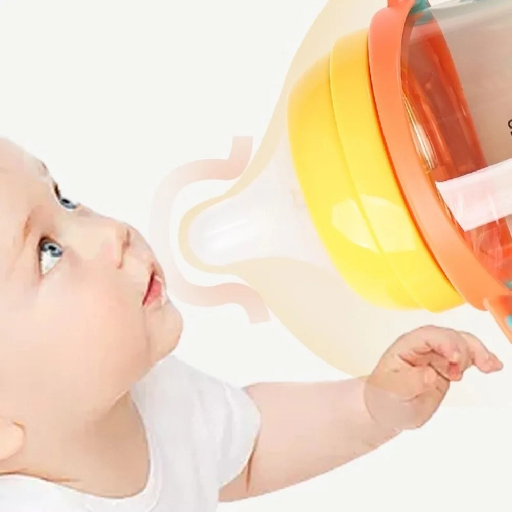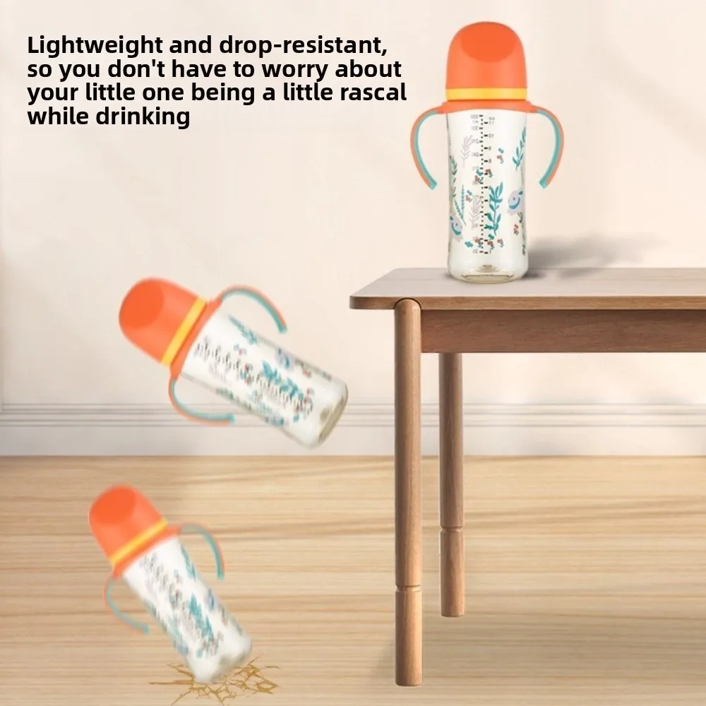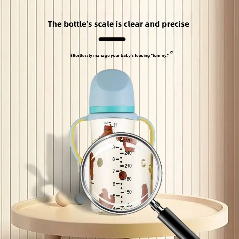 Cartoon Baby Milk Bottle with Handle Animal Pattern Baby Feeding Bottle Easy Grip Transparent Newborn Bottle Newborn Care