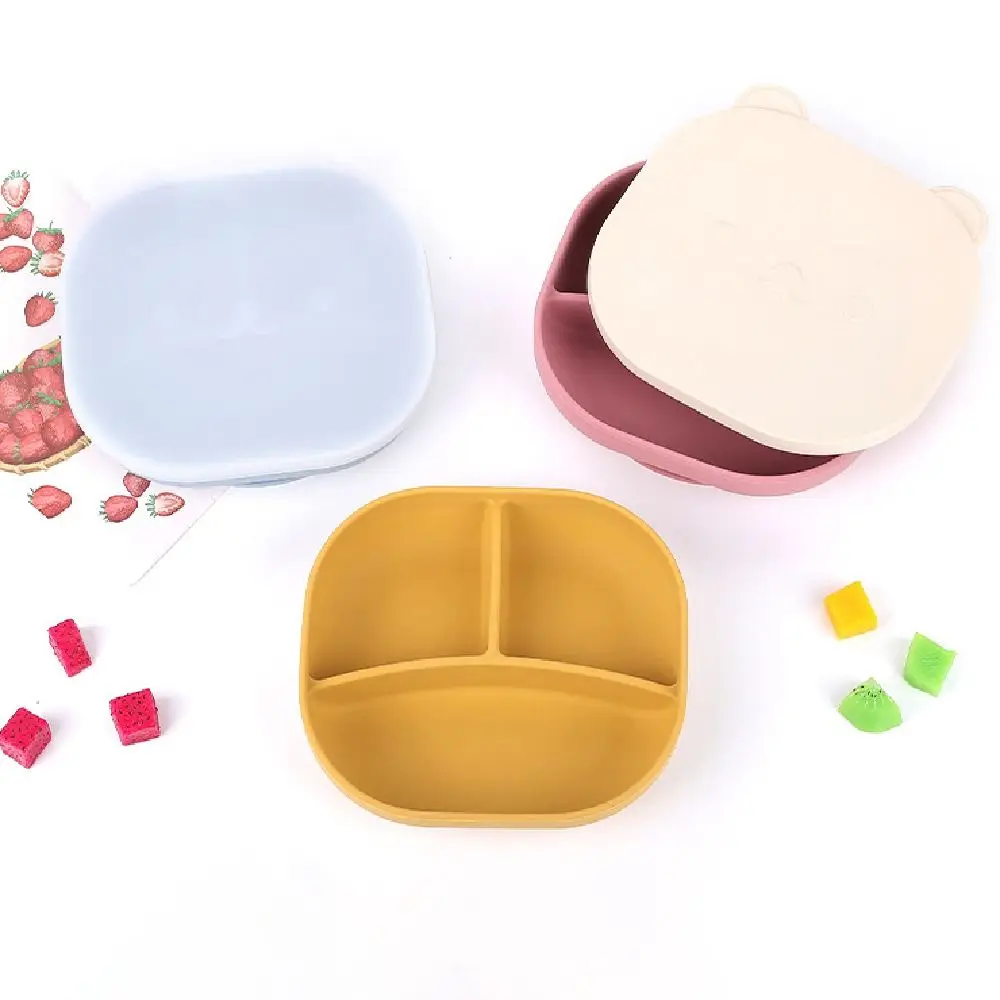 Cartoon Bear Baby Weaning Dishes BPA-Free Portable Toddler Feeding Tableware Anti-Slip with Lid Children's Tableware