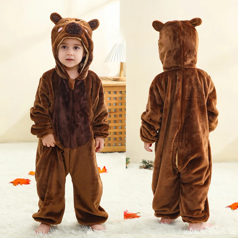 Winter Baby Rompers Baby Pijamas Dinosaur Panda Shark Deer Cow Animal Cartoon Hooded Jumpsuits Cosplay Costume Boys Girl Pajama