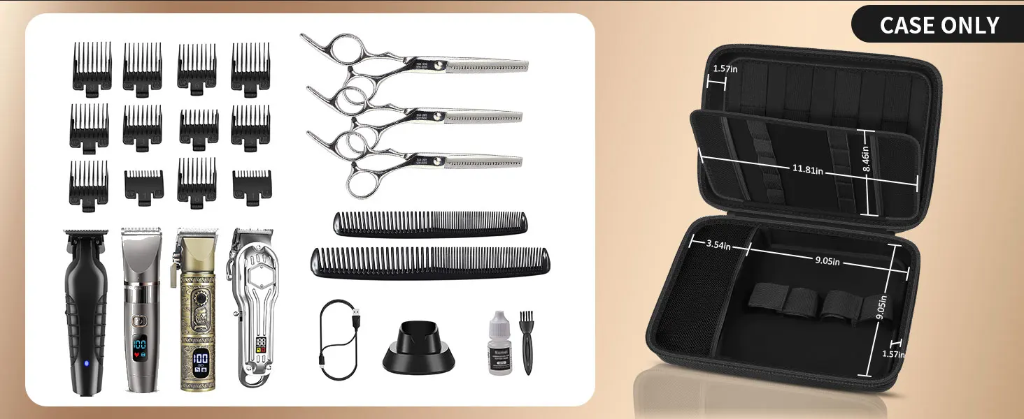 Universal Barber Clippers Case Bag Fit for: Hair clippers for men electric hair clippers box specially for Ufree/ for Hatteker/ for Wahl/ for AngFan/ for Novah/ for Limural/ for SUPRENT/ for GLAKER/ for Romanda/ for Fannas/ for Philips/ for BaBylissPRO clipper/ for andis master/ for KIKIDO Professional Clippers Cordless for Men and barber kit. Hair cutting kit with a compact external size : 13.38 x9.44 x 3.54 inches. Interior size: 12.59 x 9.05 x 1.57 inches. (JUST A CORDLESS HAIR CLIPPER BOX )