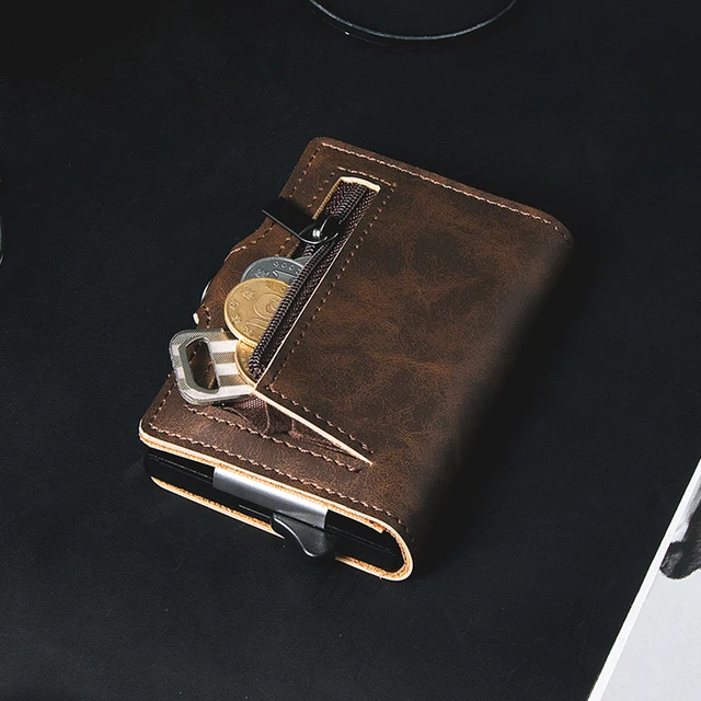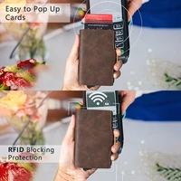 Casekey Top Quality Pu Vintage Leather Card Wallet Rfid Blocking Pop Up Card Holder with Money Clip and