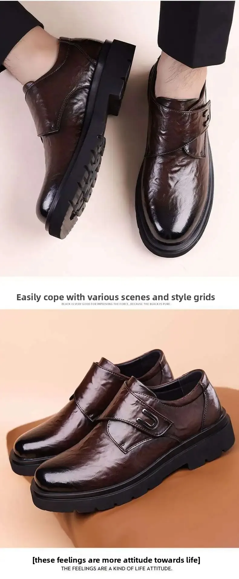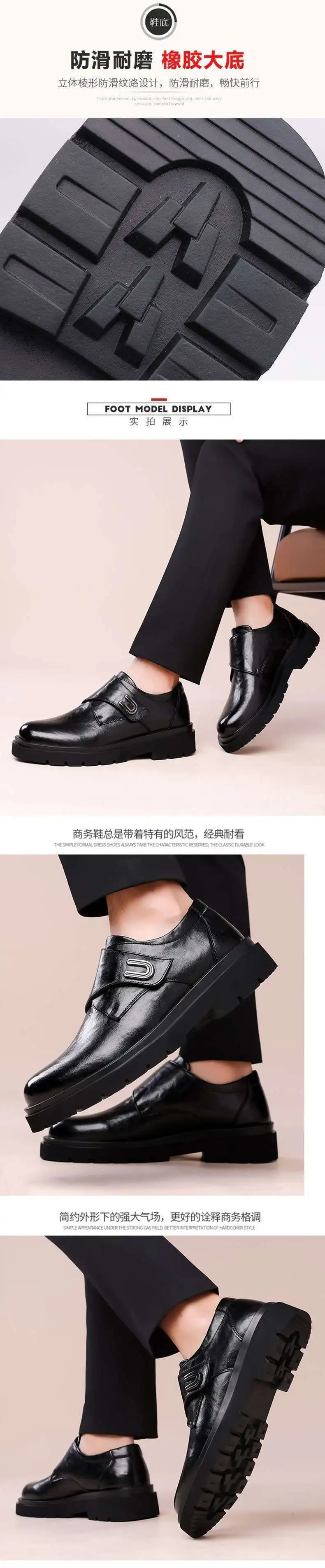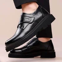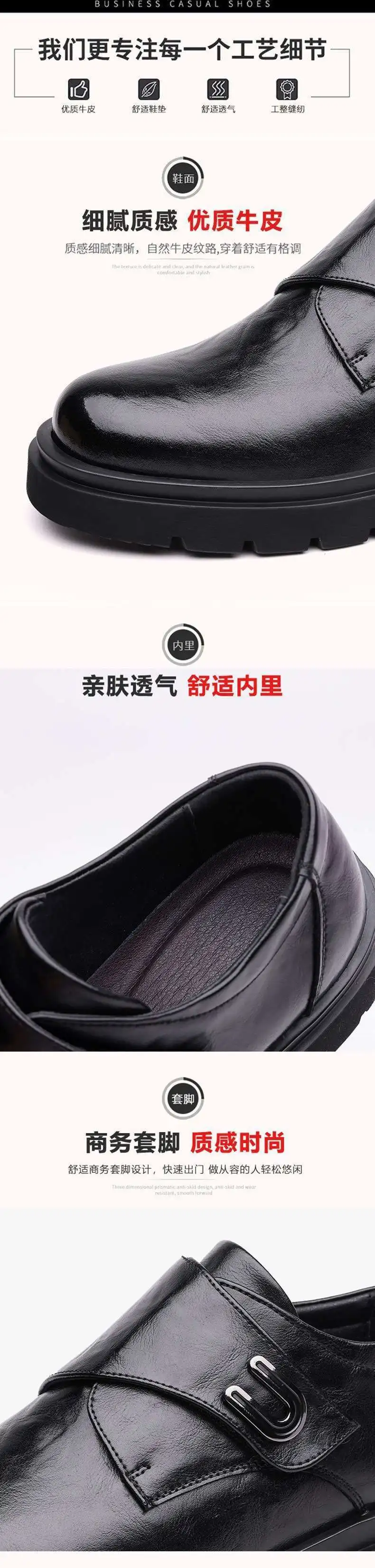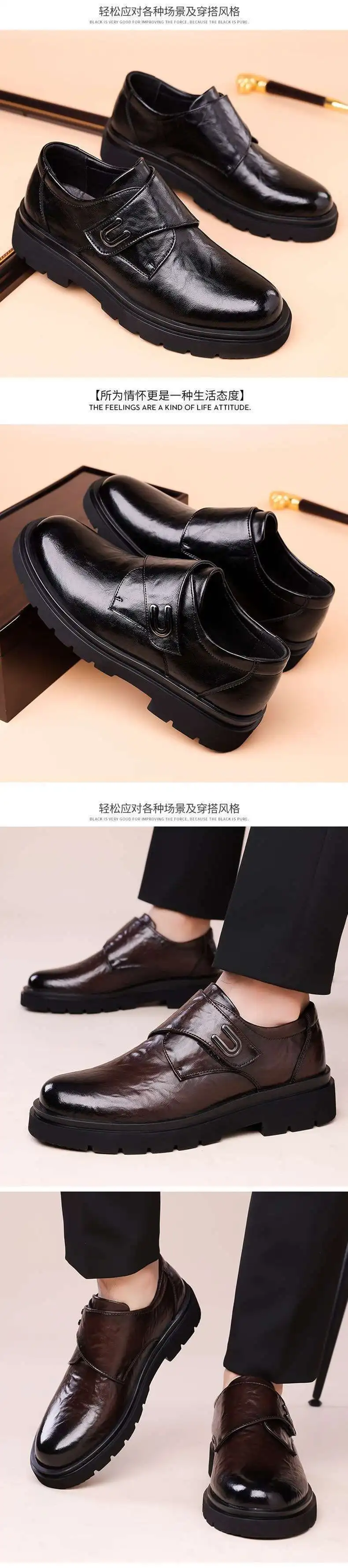 Casual Breathable Business Men’s Leather Shoes Thick Bottom Heightening Monk Shoes Slip-On Trendy