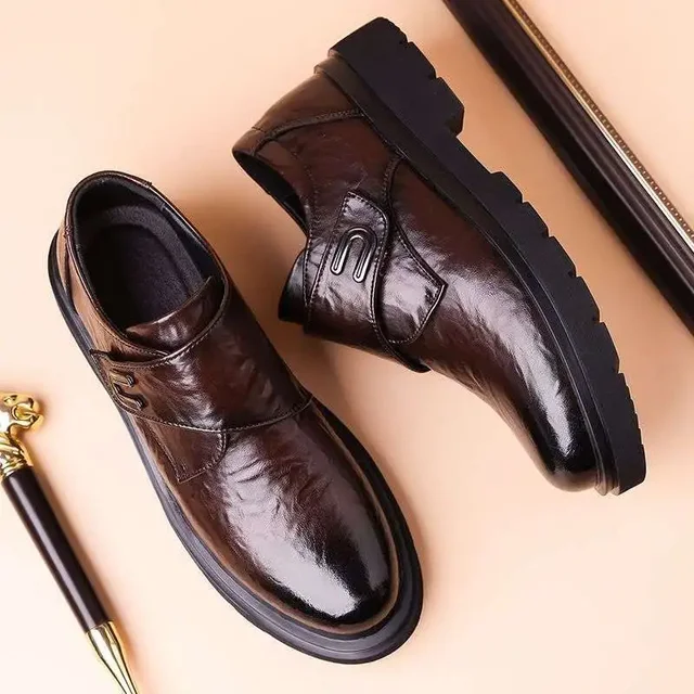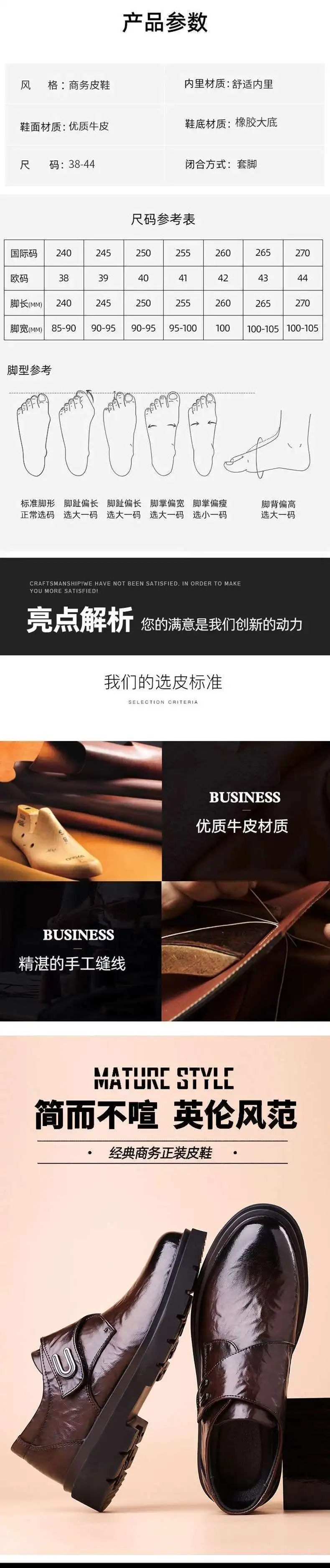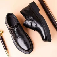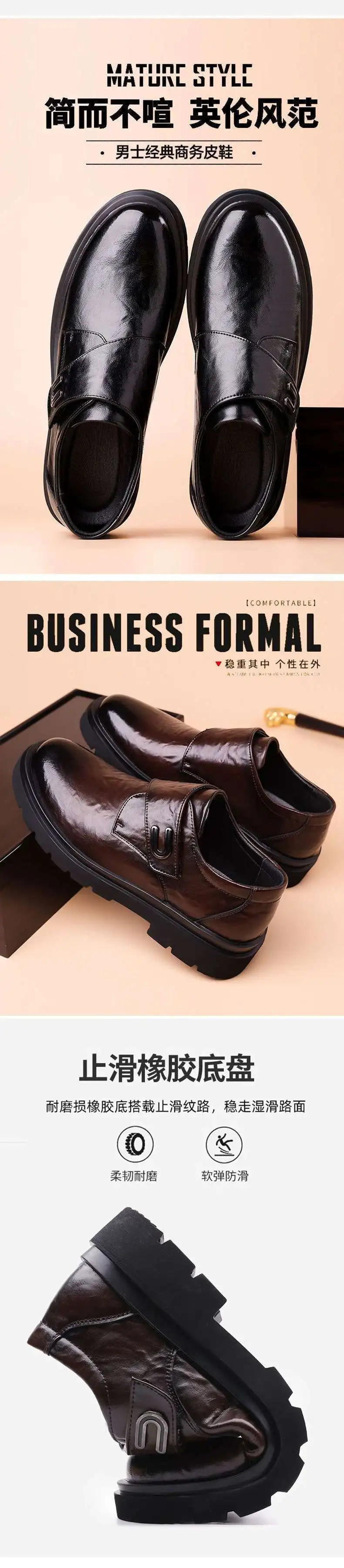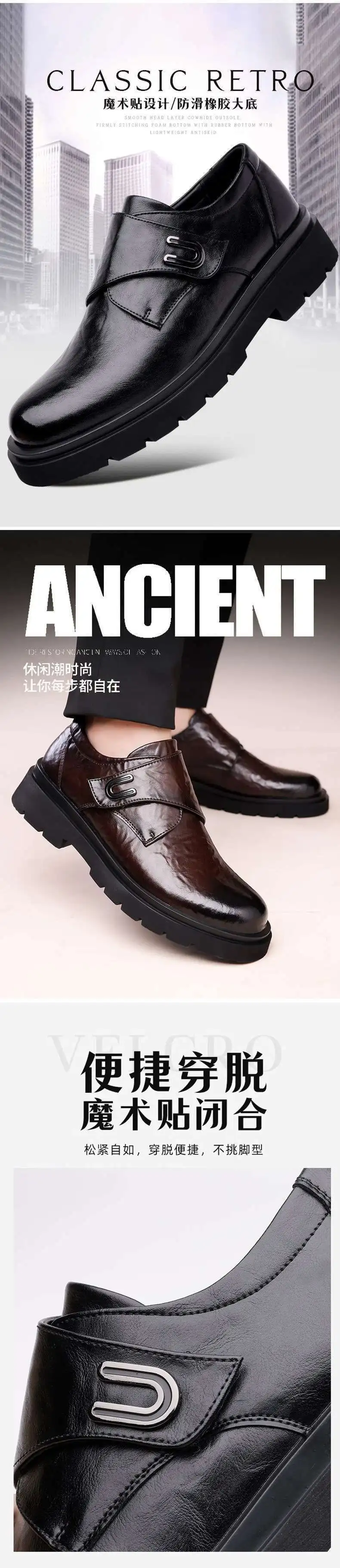 Casual Breathable Business Men’s Leather Shoes Thick Bottom Heightening Monk Shoes Slip-On Trendy