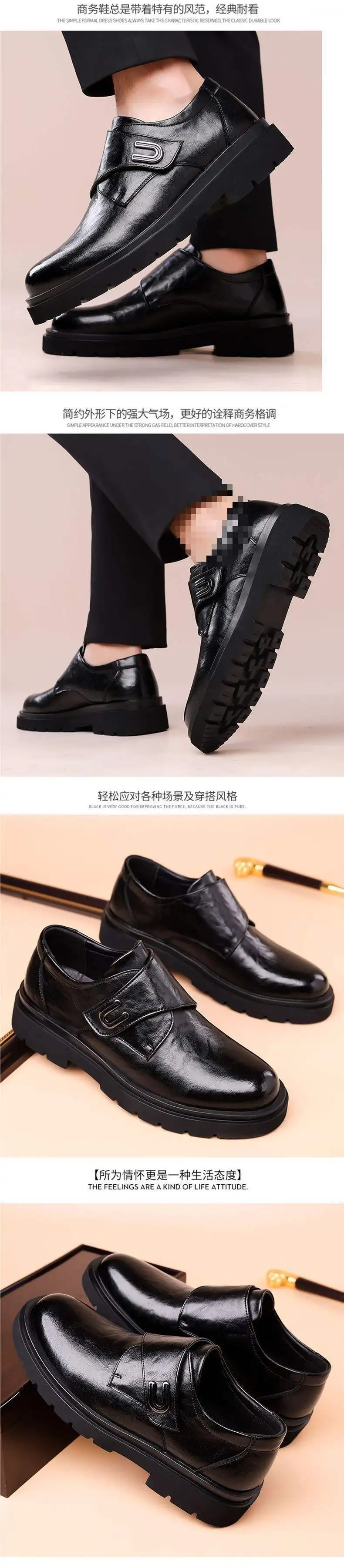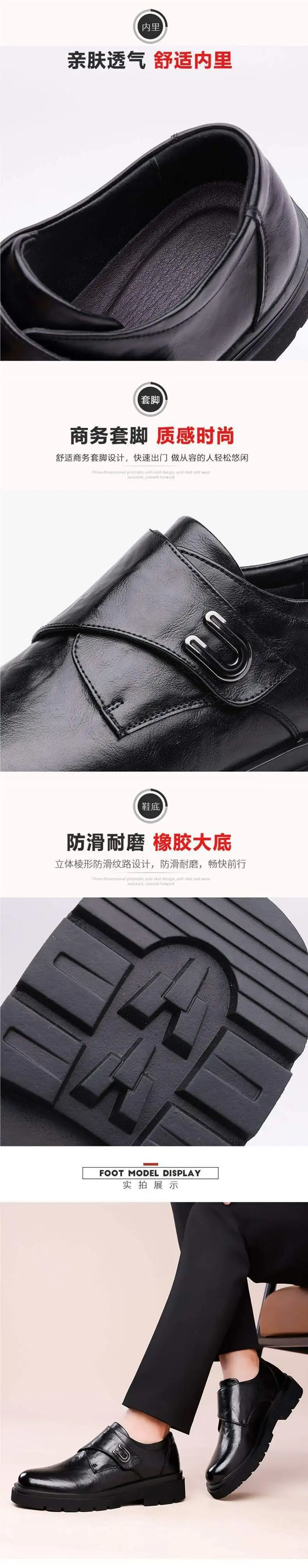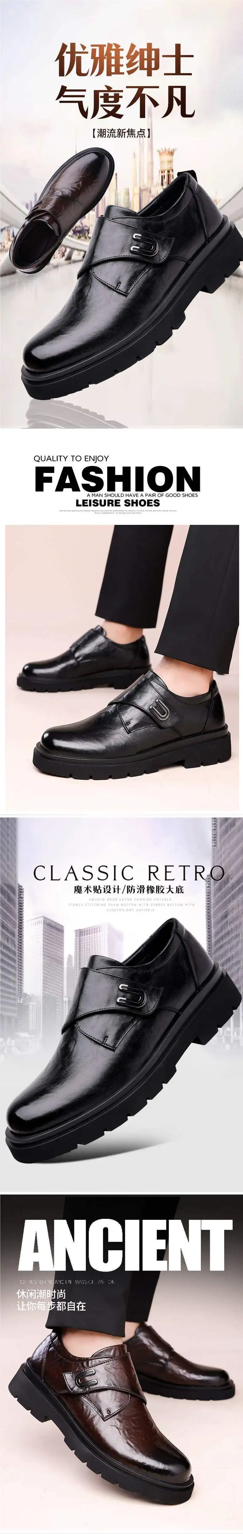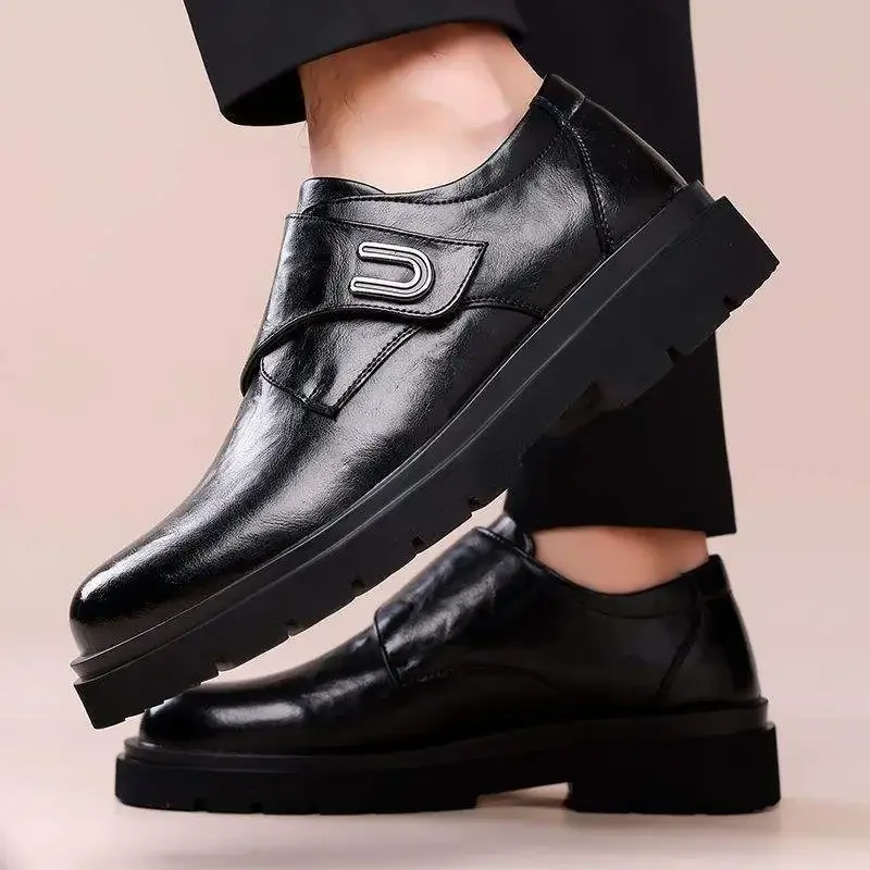 Casual Breathable Men’s Leather Shoes Thick Bottom Heightening British Style Business Monk Shoes