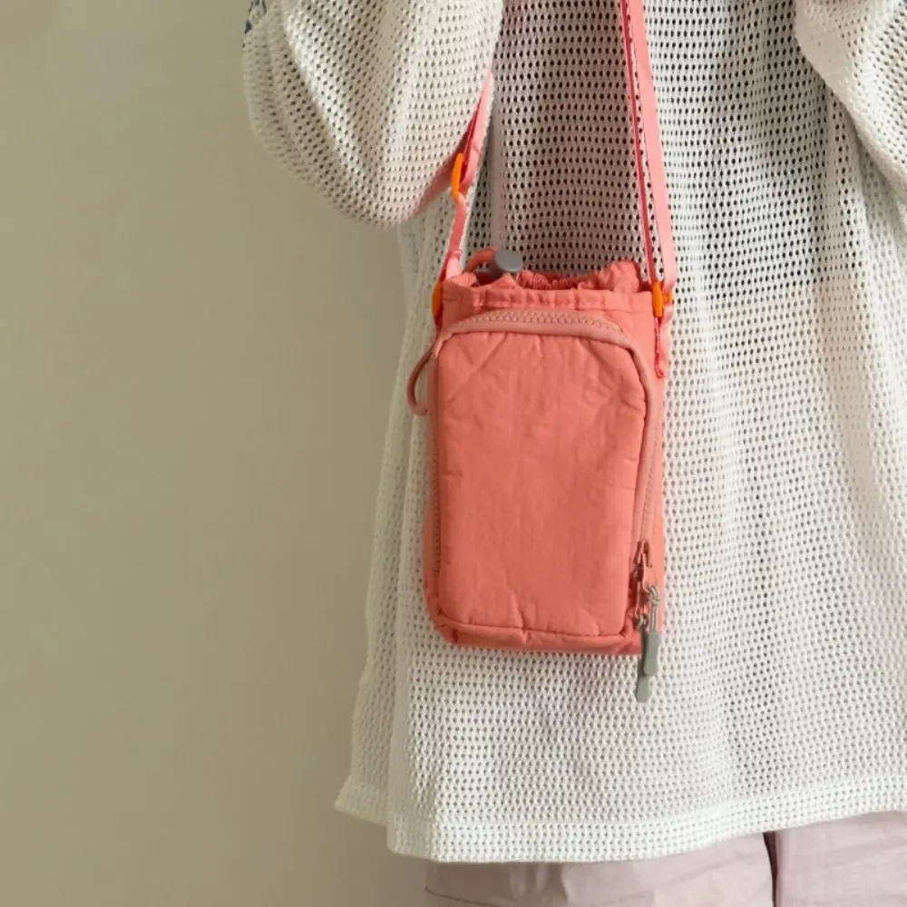 Casual Korean Style Drawstring Bag Purse Water Cup Cover Water Cup Bag Solid Color Water Bottle Holde Nylon Shoulder Bag Outdoor
