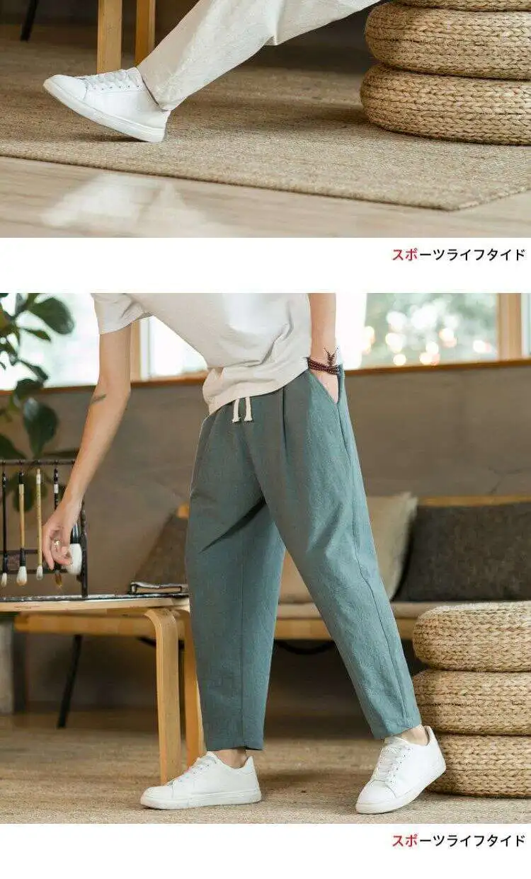 Crafted from 100% linen, these trousers provide a lightweight and breathable feel, perfect for summer wear.