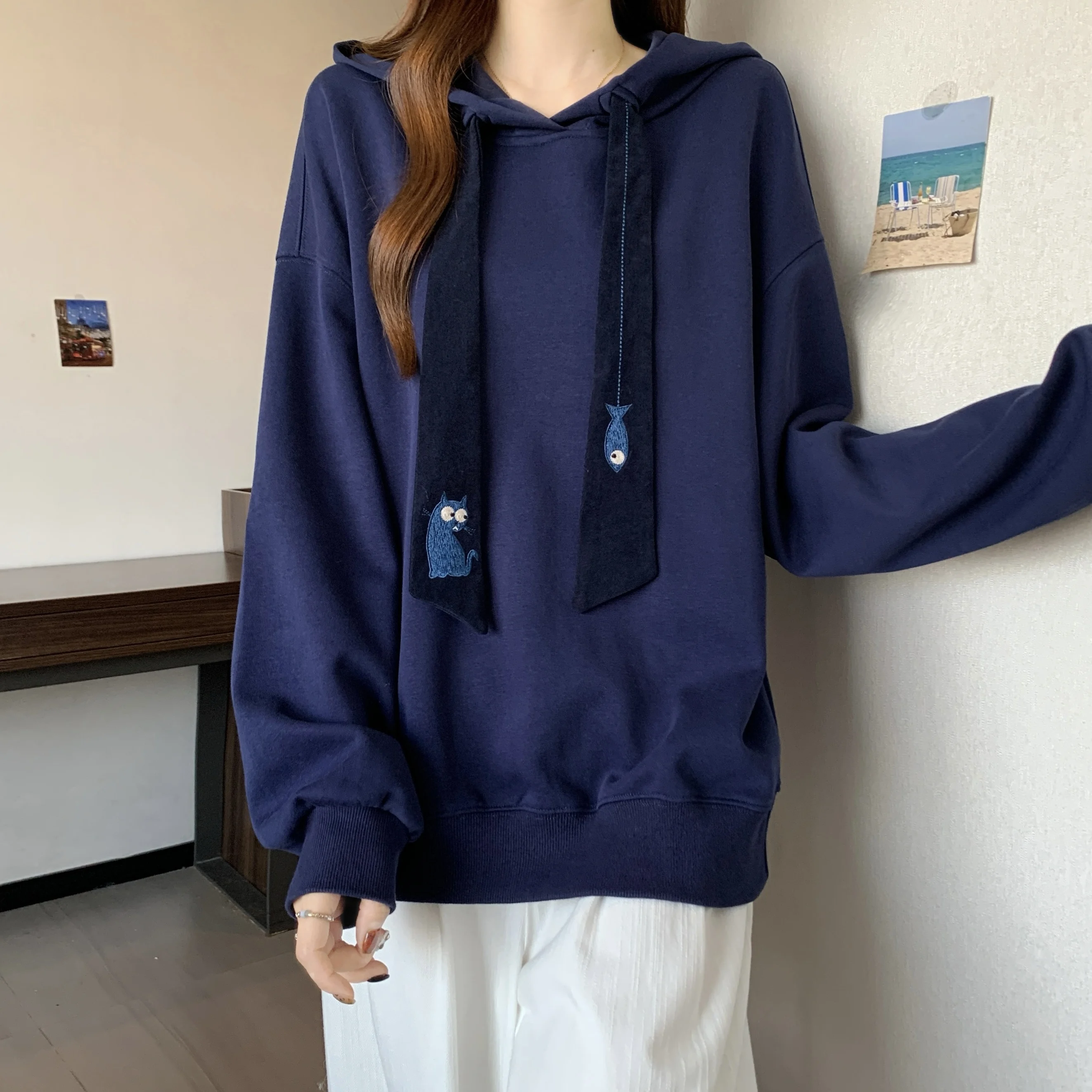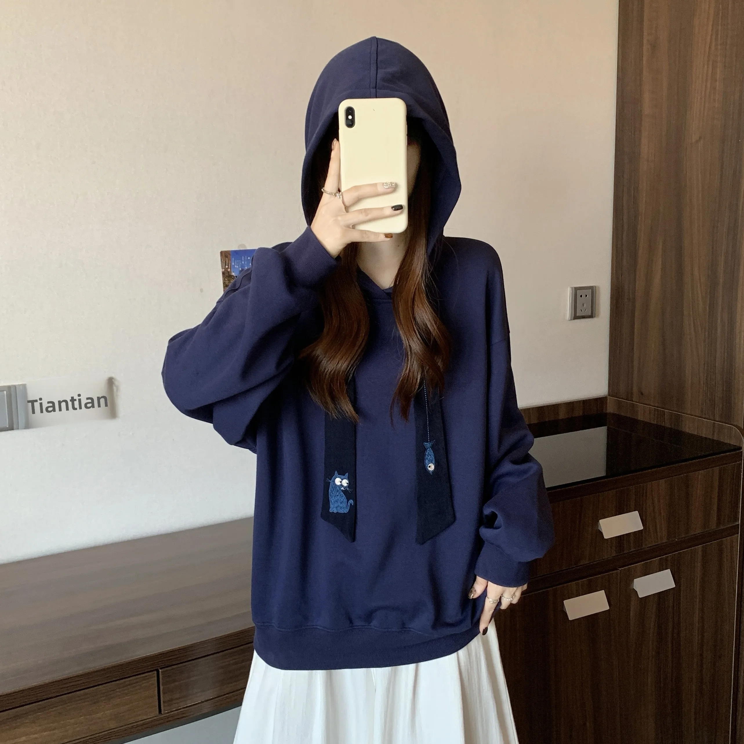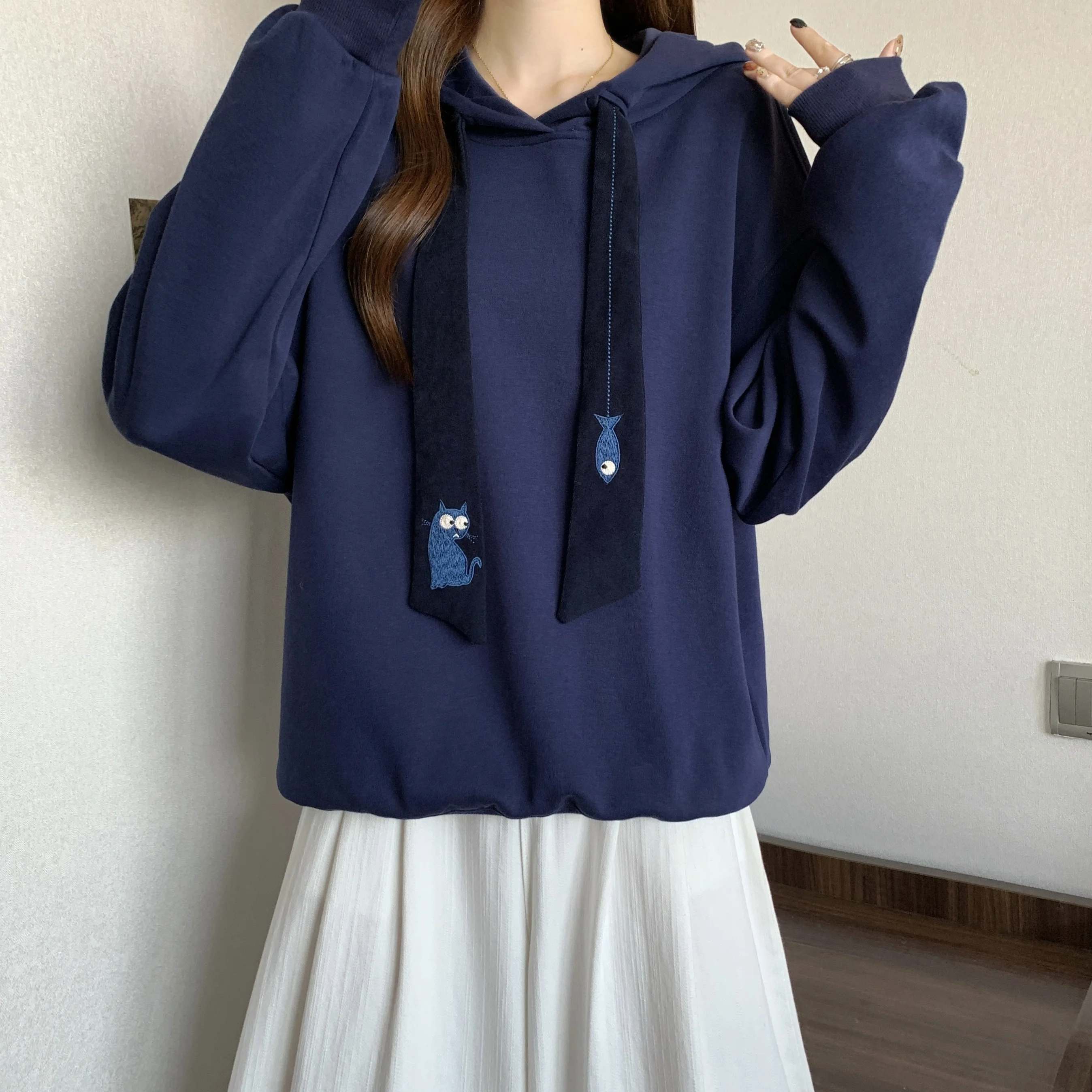 Be the first to review “Casual Long Sve Hoodie Women’s plus Size Embroidered Dstring Sweatirt Trendy Slimming Autumn Winter”