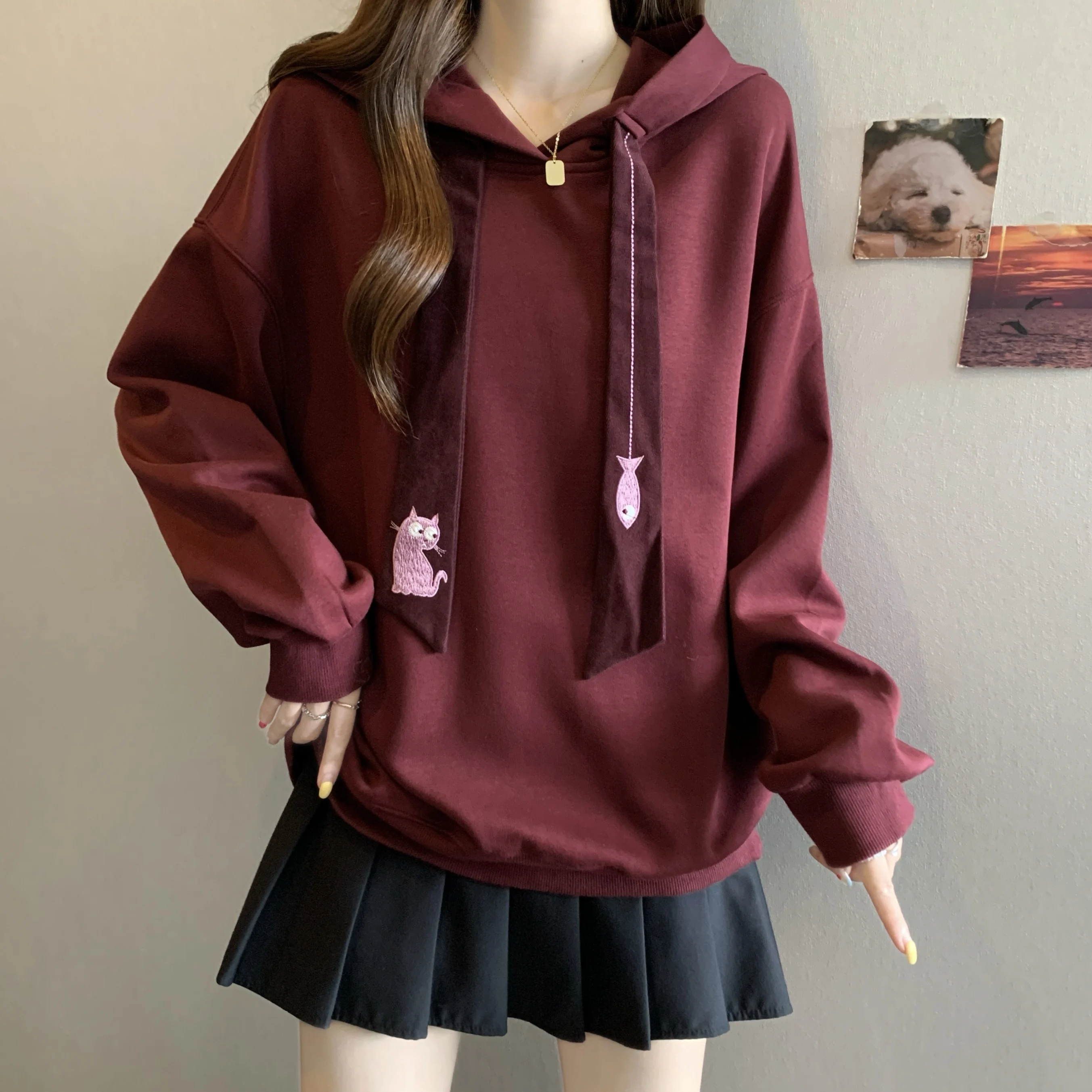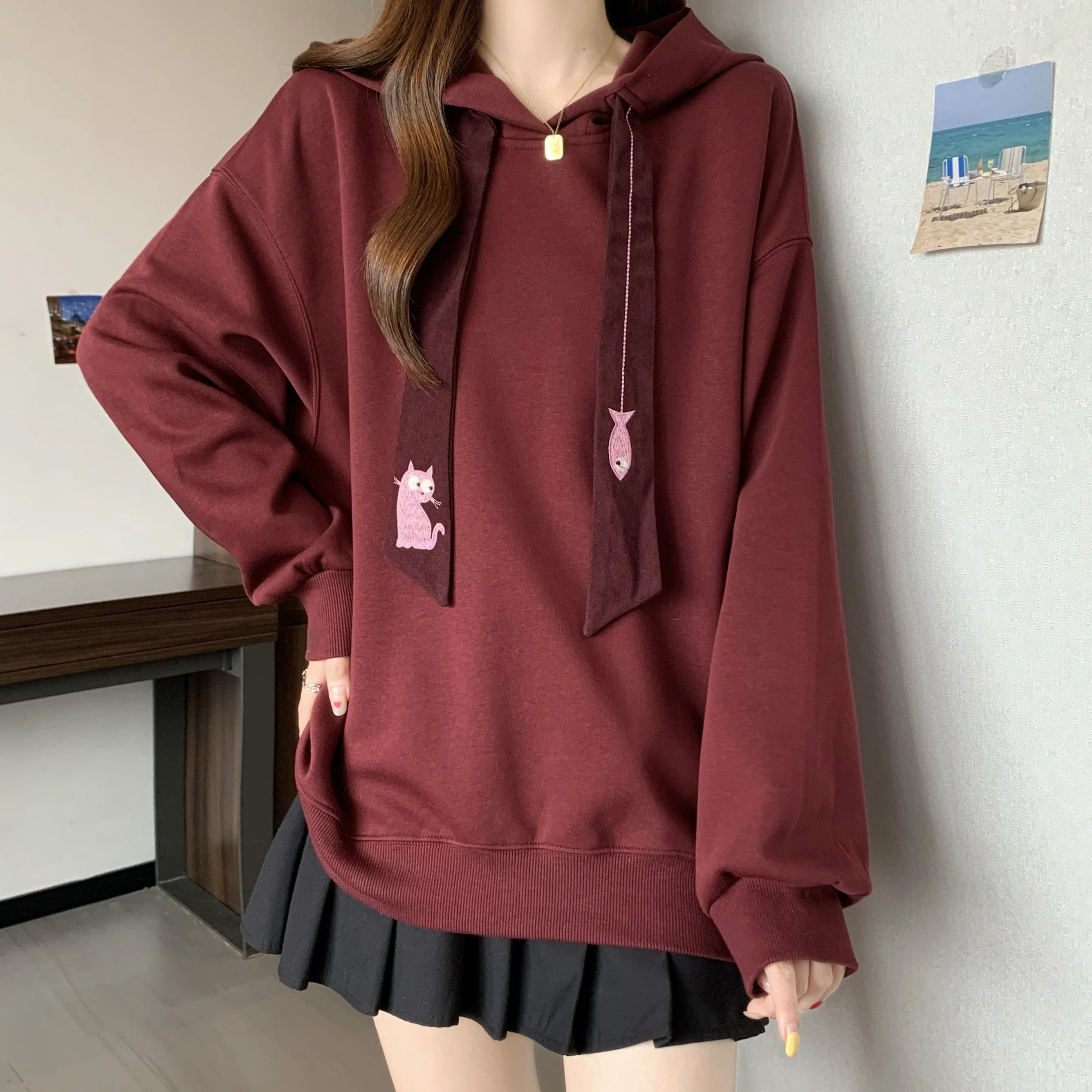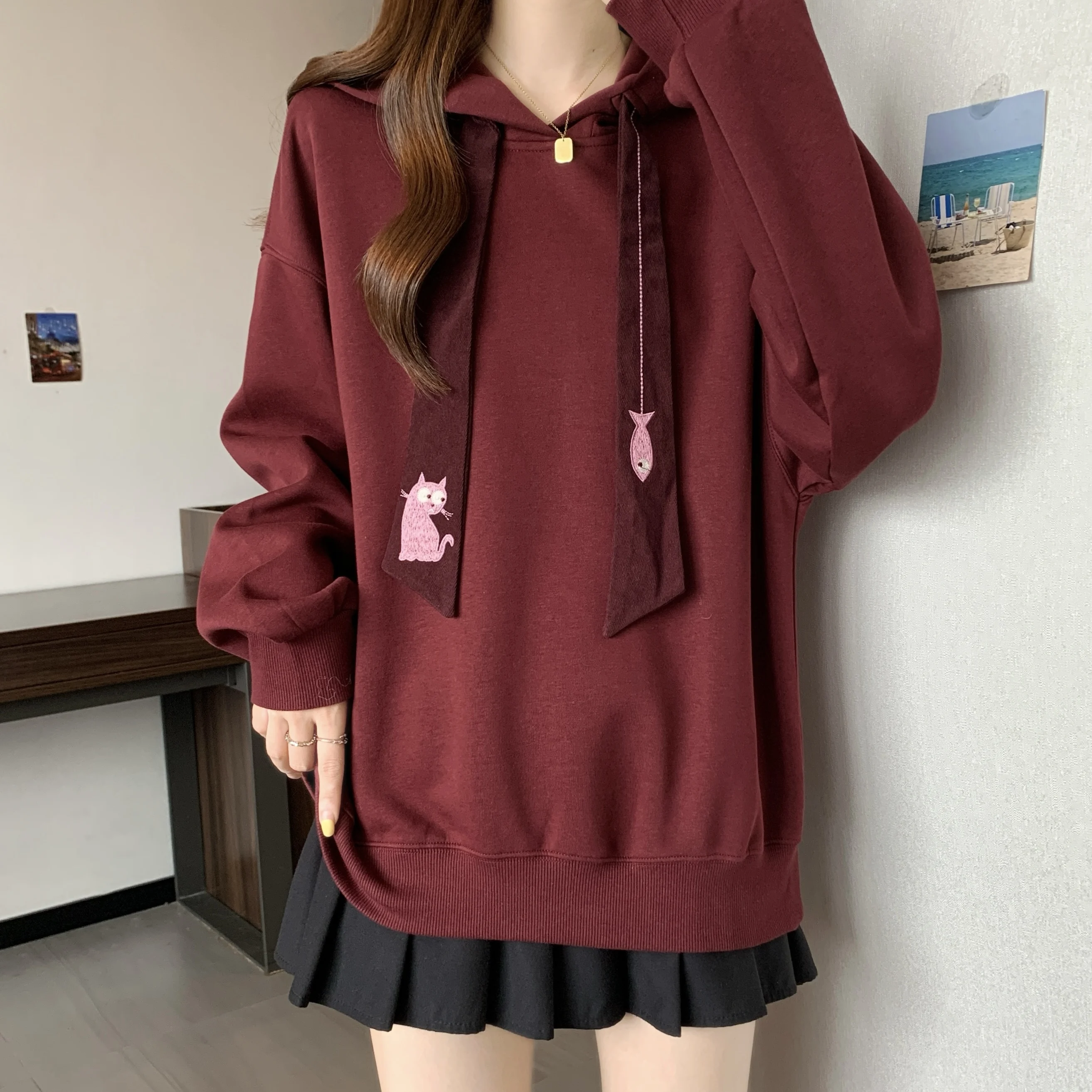 This oversized hoodie features a casual style, perfect for everyday wear. Its loose fit and comfortable design make it ideal for autumn and winter.