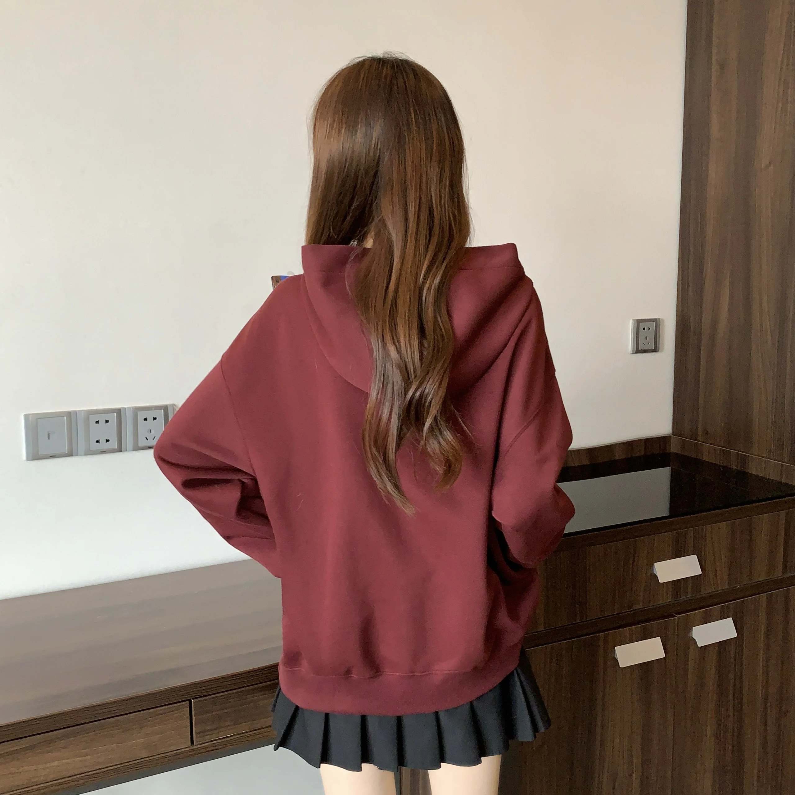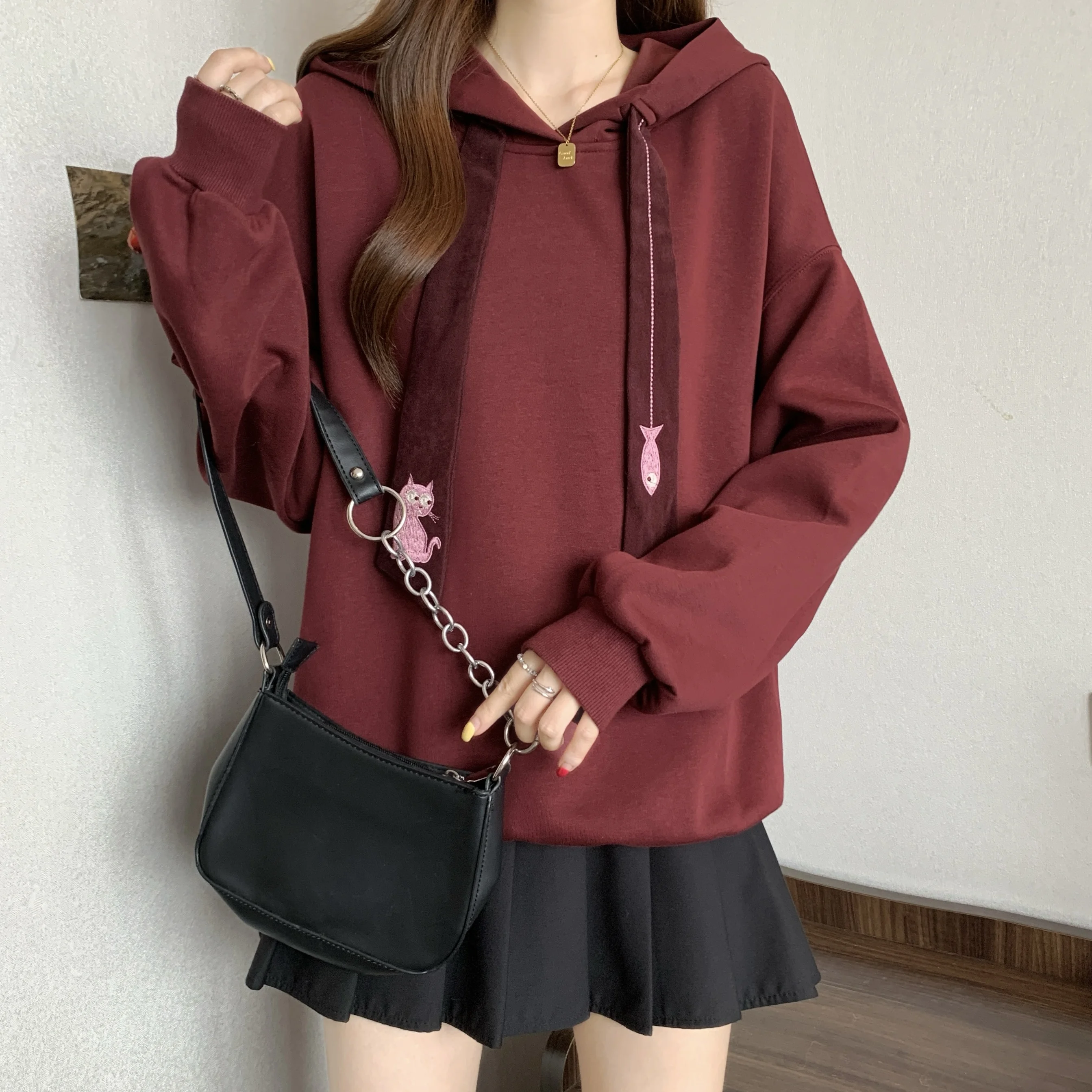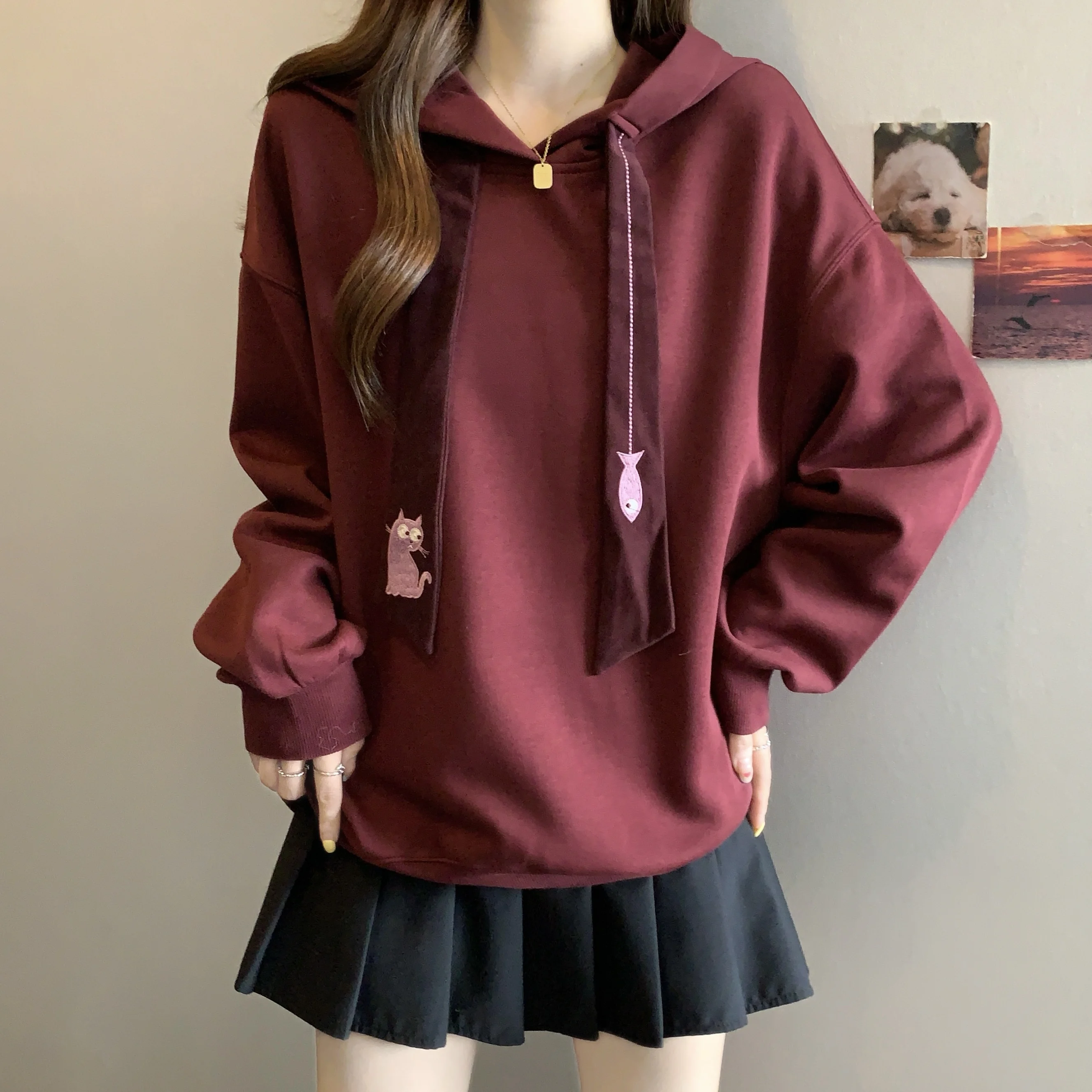 This oversized hoodie features a casual style, perfect for everyday wear. Its loose fit and comfortable design make it ideal for autumn and winter.