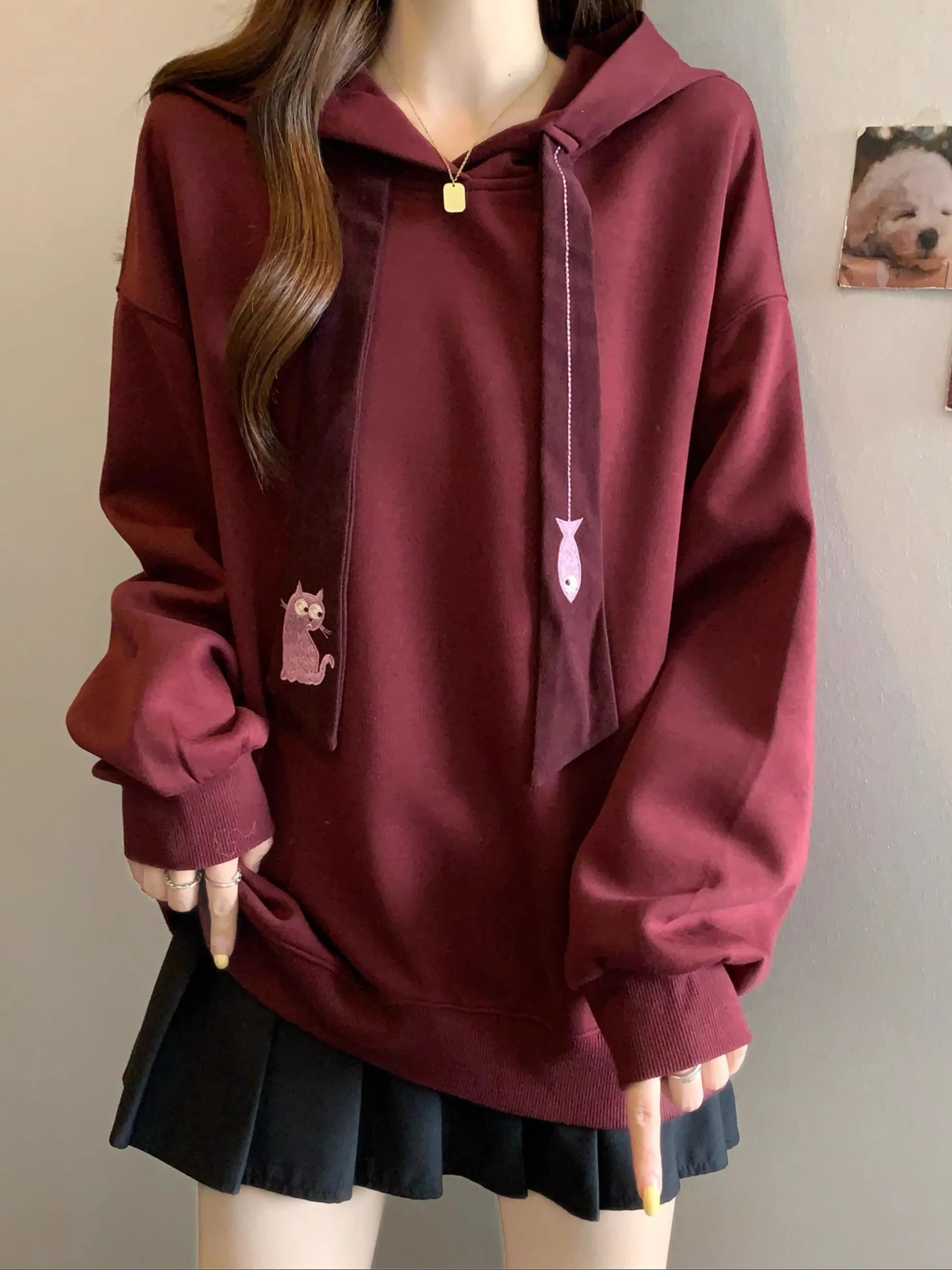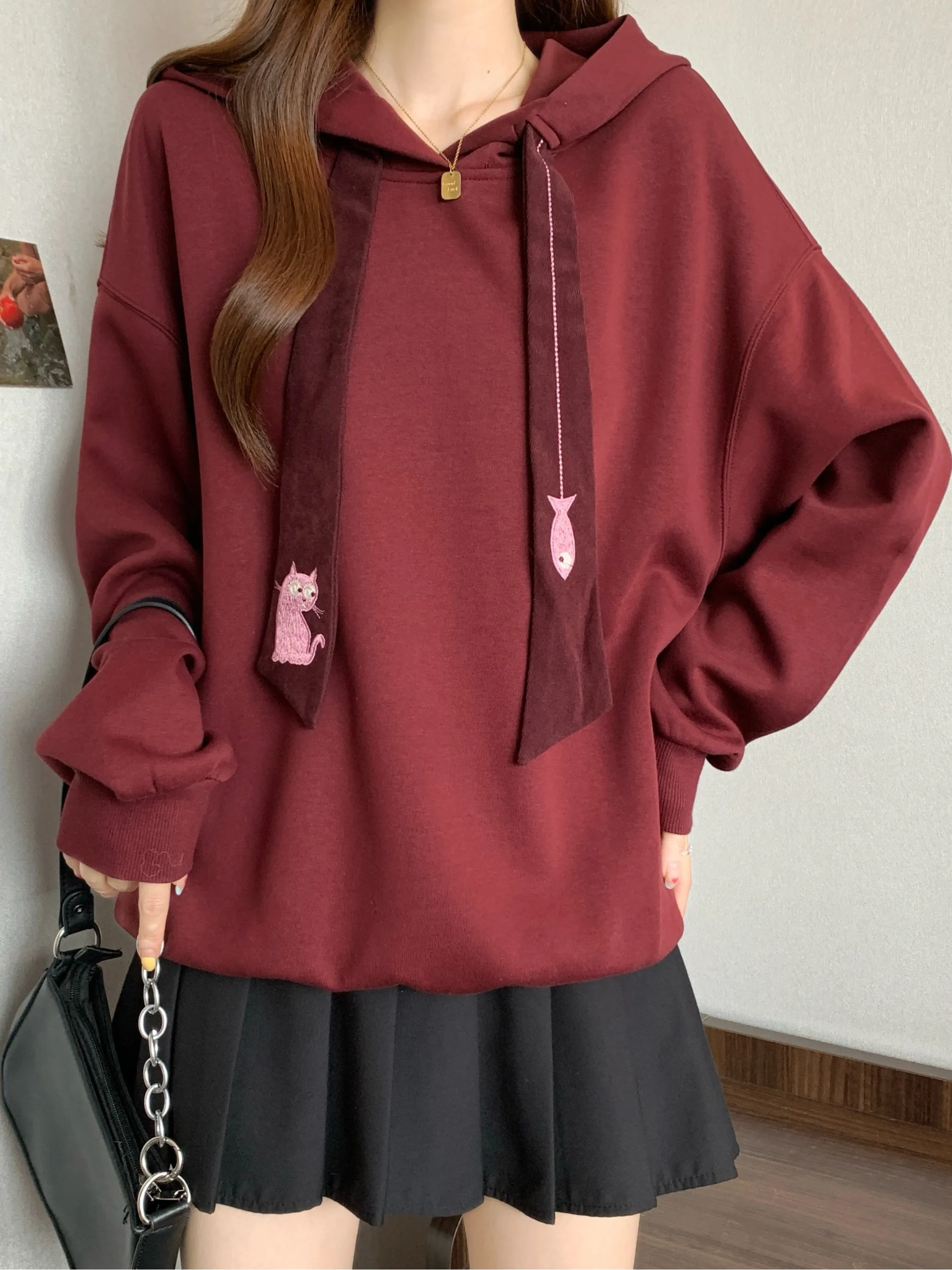 This oversized hoodie features a casual style, perfect for everyday wear. Its loose fit and comfortable design make it ideal for autumn and winter.