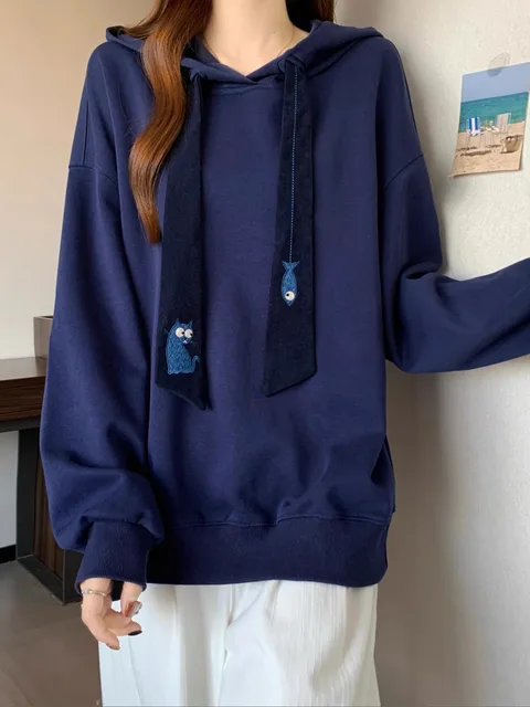 Be the first to review “Casual Long Sve Hoodie Women’s plus Size Embroidered Dstring Sweatirt Trendy Slimming Autumn Winter”