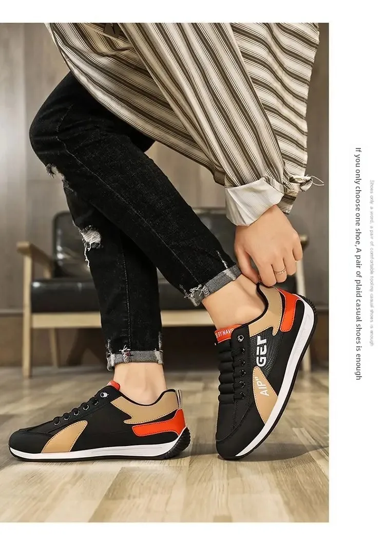 Casual Men's Shoes Soft Bottom AGAM Style Breathable Leather Upgraded Spring Autumn Seasonal Fashionable Dad Sneakers