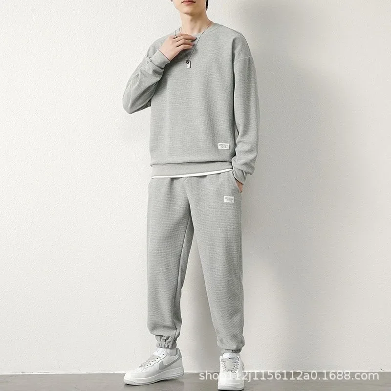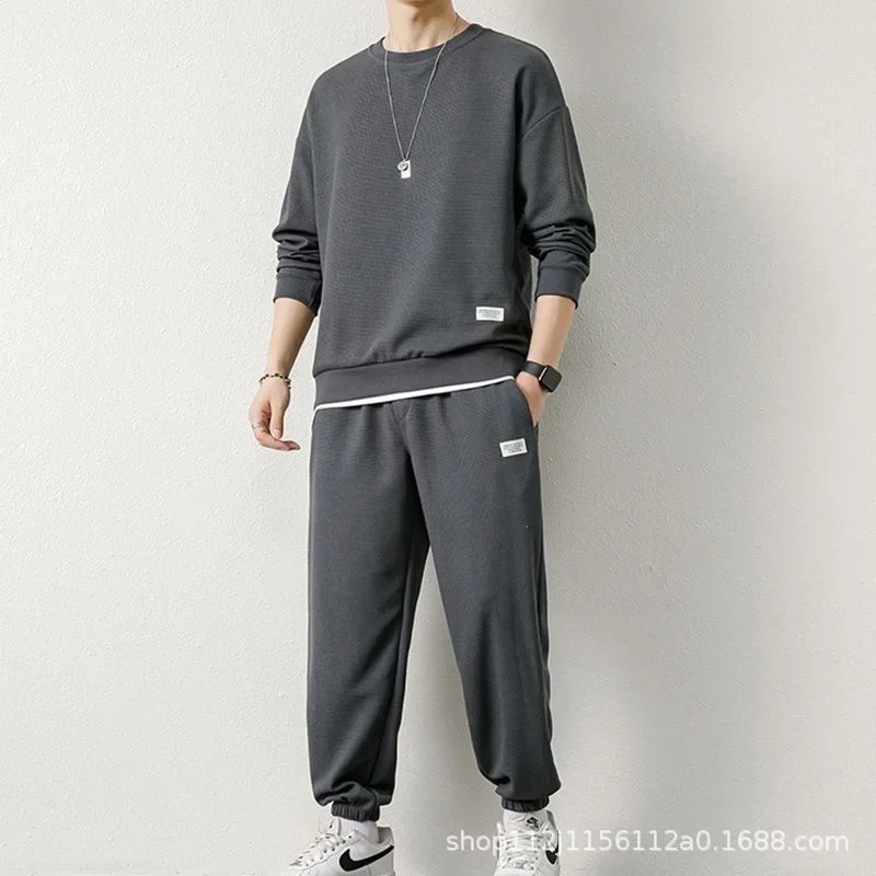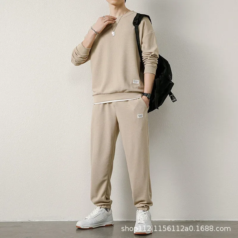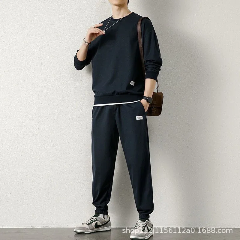 Casual Sporty Men's Long Sleeve T-Shirt Set Two-Piece Suit Nine-Piece Pants Autumn Spring New Style Handsome Male Clothing