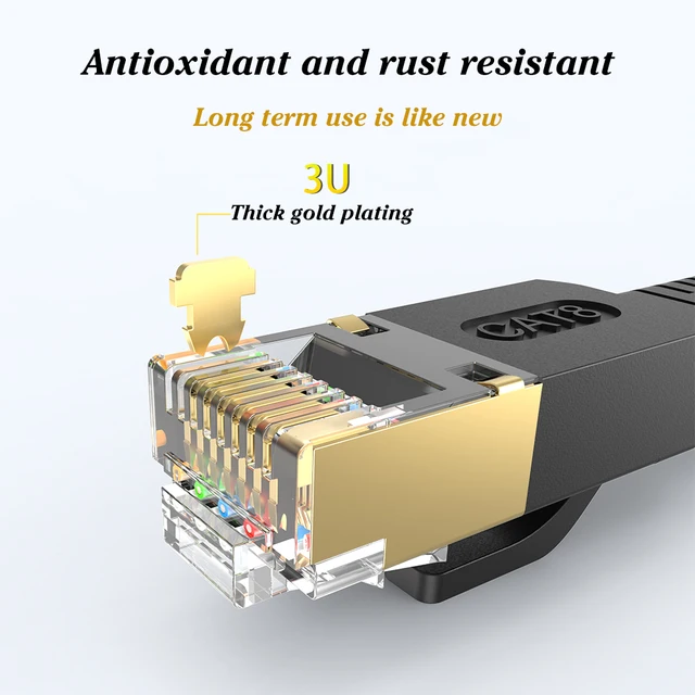 ✦Performance: The bandwidth can reach 40Gbps, the transmission frequency is 2000MHz, and the wire has undergone multi-layer shielding treatment for stable transmission and strong anti-interference ability; This is an ultra high speed RJ45 cable suitable for shopping malls, offices, entertainment venues, etc.