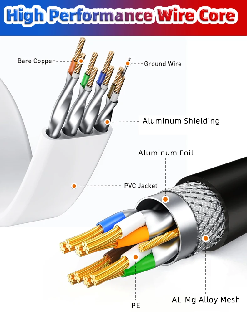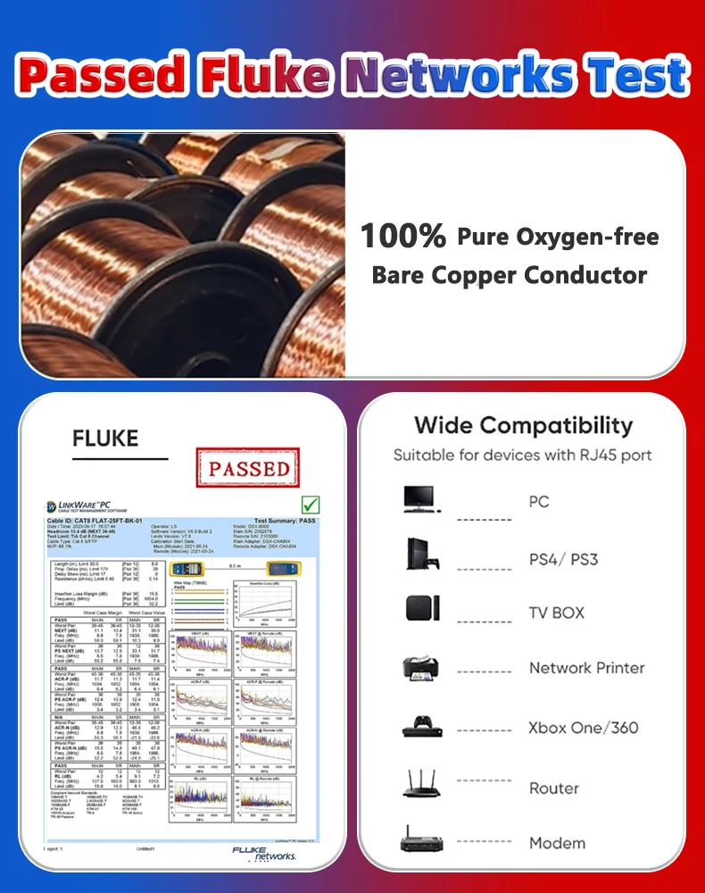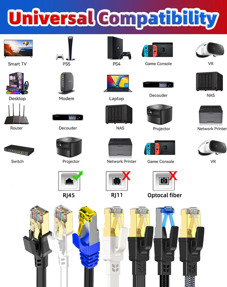 Backward Compatibility: Fully compatible with Cat5, Cat5e, Cat6, Cat6a, and Cat7 devices.