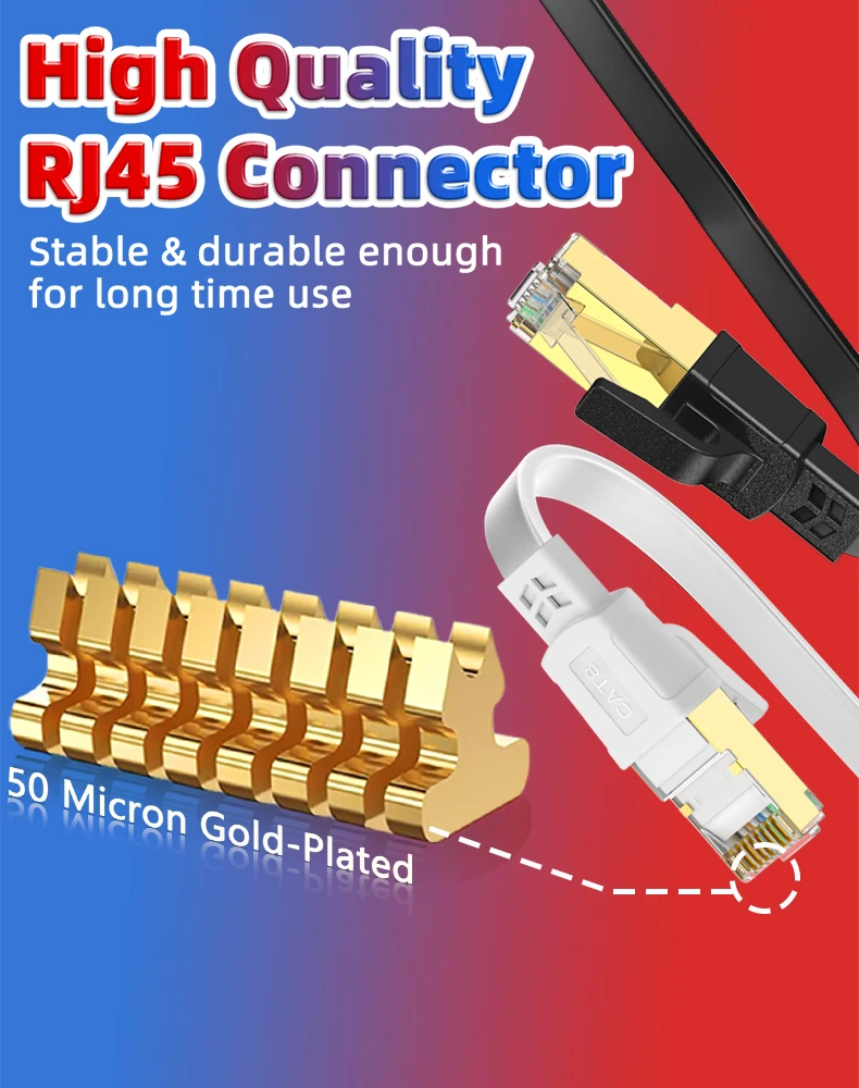 Enhanced Performance: 24K gold-plated connectors and 8P8C gold-plated contacts provide faster and more stable speeds.