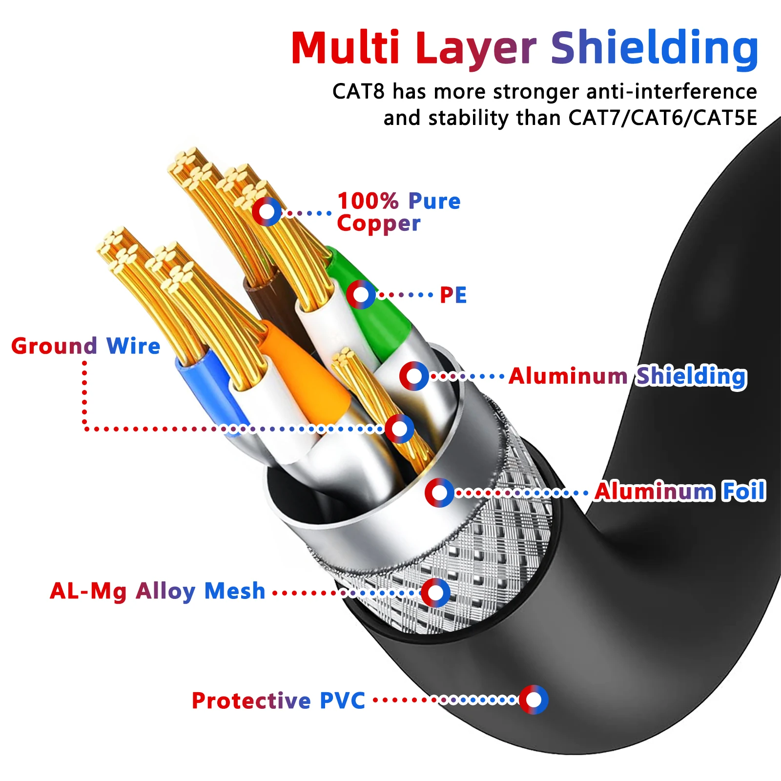 4x Faster Than Cat7: HENGSUR CAT8 Ethernet Cable delivers network speeds 4 times faster than Cat7, ensuring seamless performance for all your RJ45 devices.
