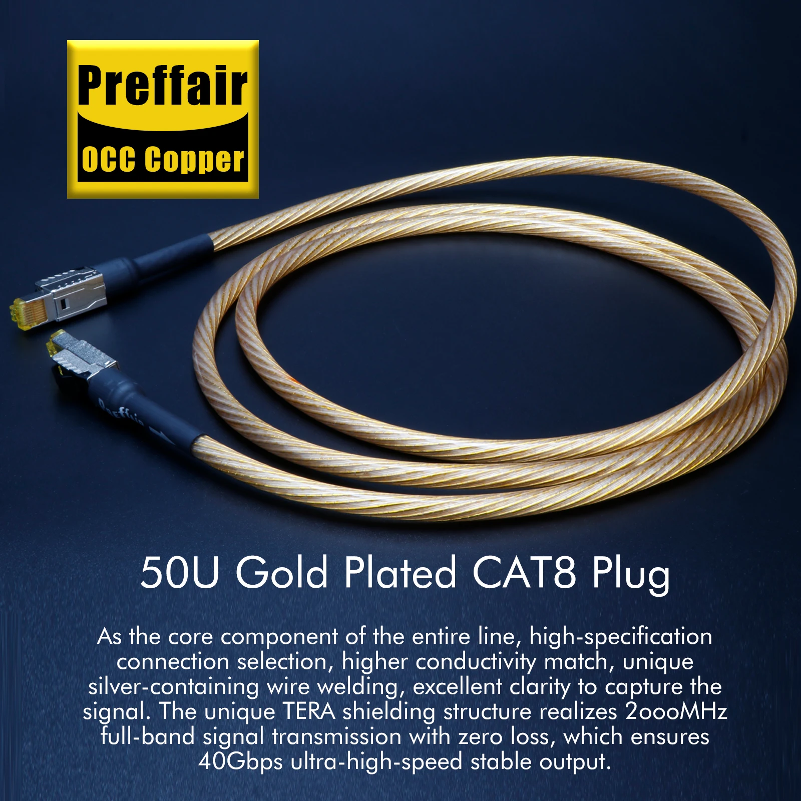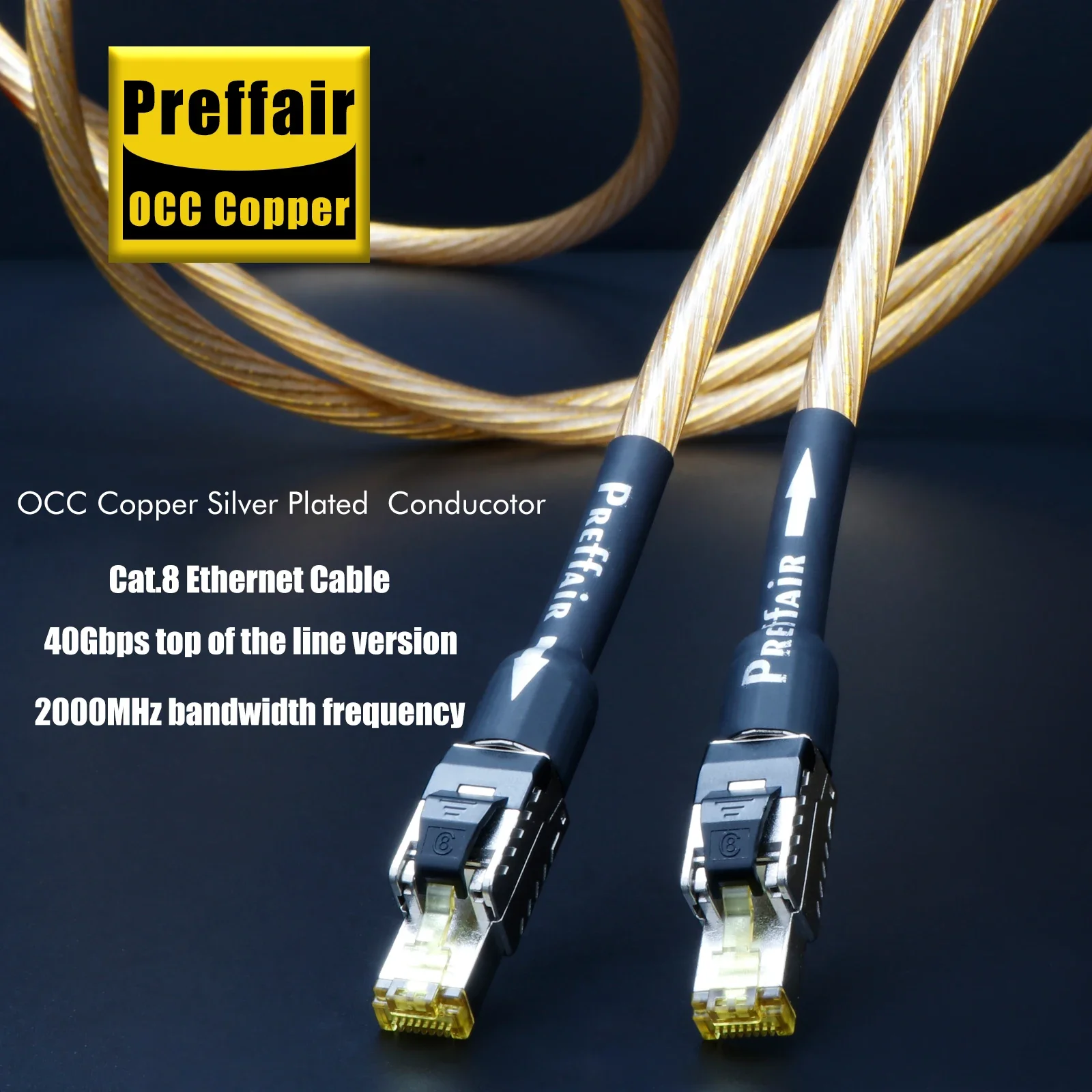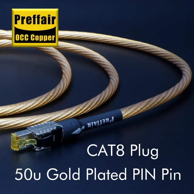 Cat8 Ethernet Cable for Rj45 Interface OCC Sterling Silver Flagship Gold Cat8 Network Cable Digital Cable 40Gbps 2000Mhz Speed