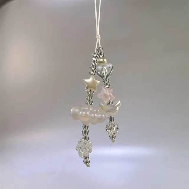 Cell Phone Rope Chain Anime Pendant Y2K Beaded Beads Chain Handmade Beads Strand Choker Pink Key Chain