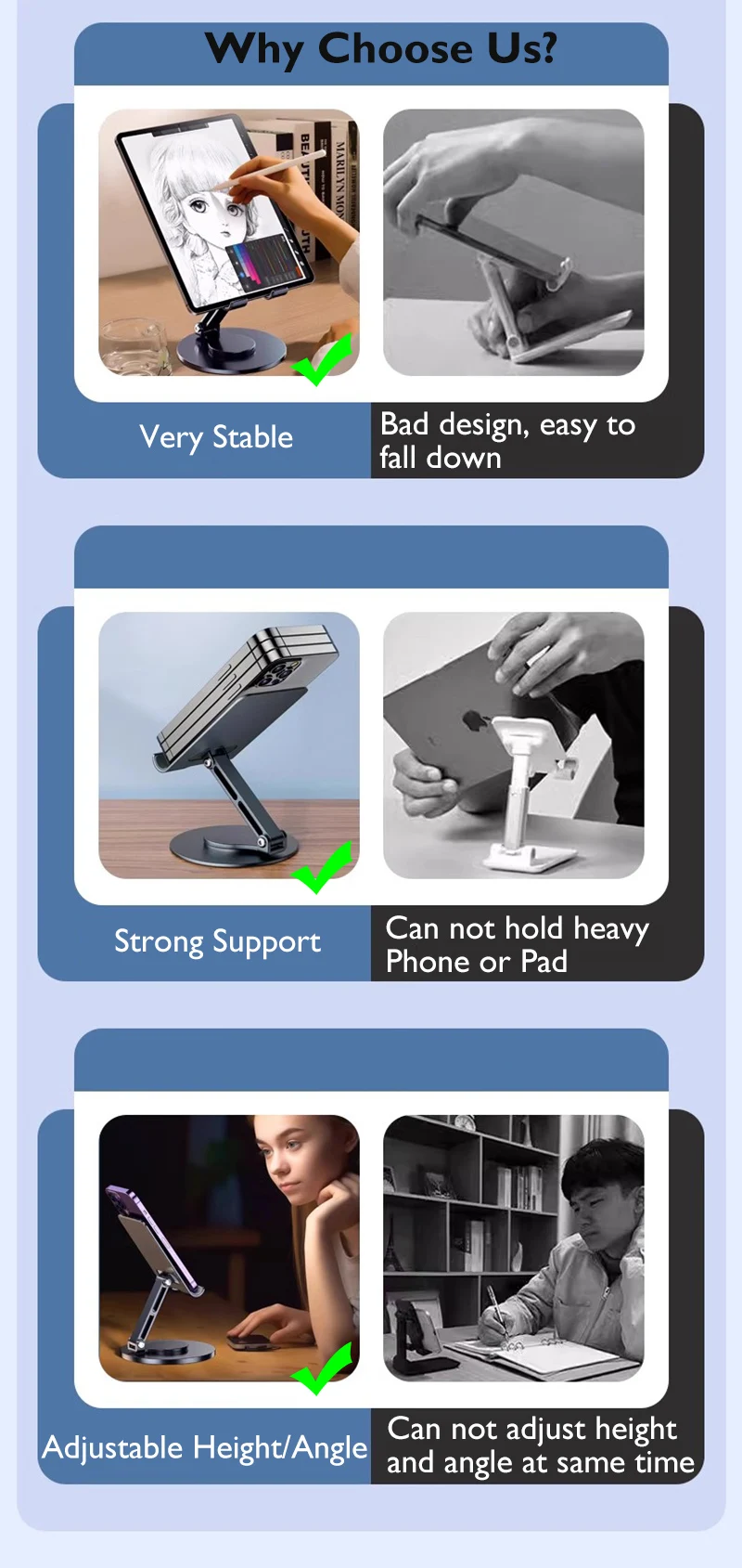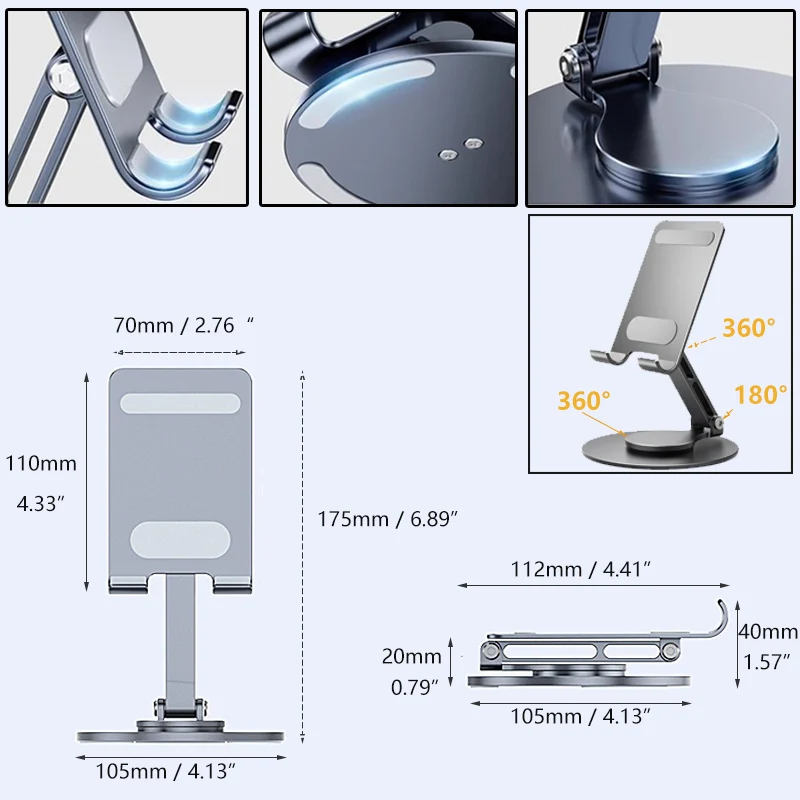 Top Quality: Our desktop cell phone stand is made of aluminum alloy and silicone for better stability and durability.