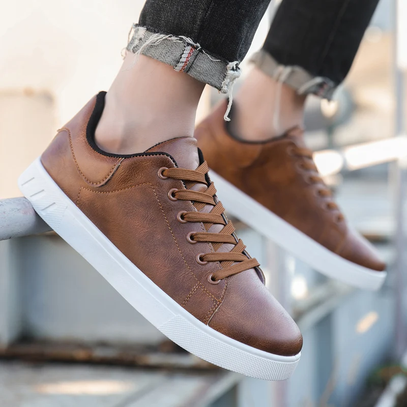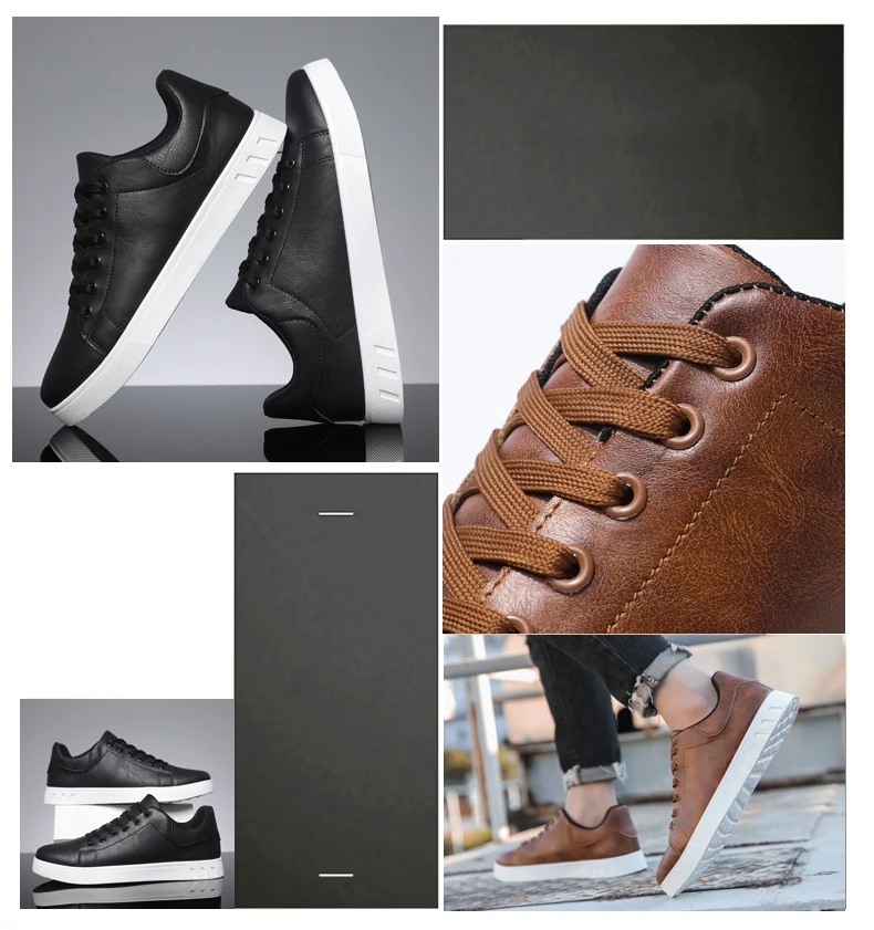 Cheap Brown Men’s Leather Casual Shoes Big Size 48 Comfy Skateboard Shoes Men Lace Up Flat Vulcanize Shoes Man zapatillas hombr