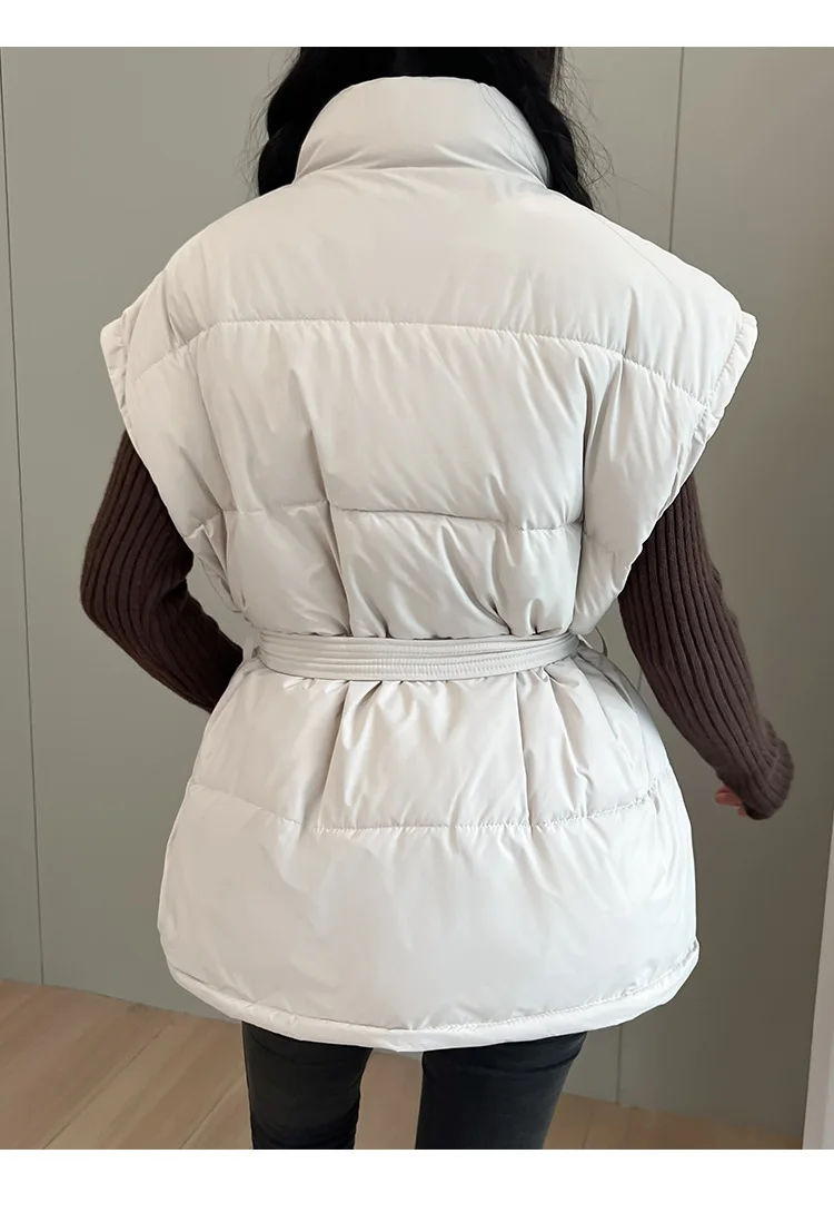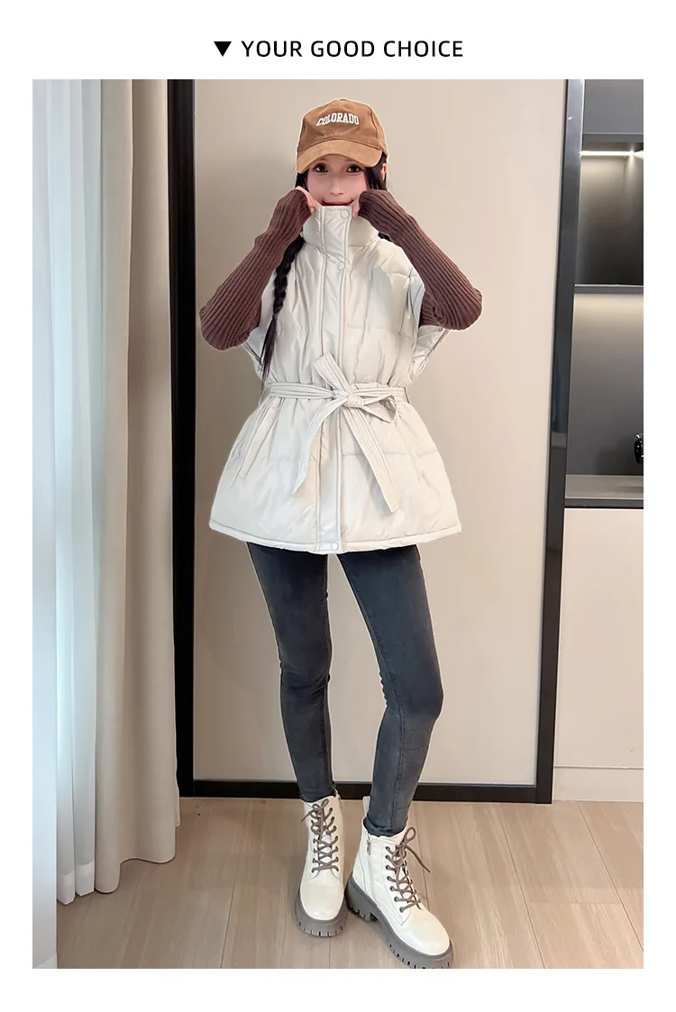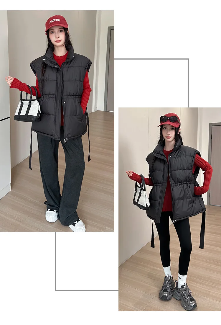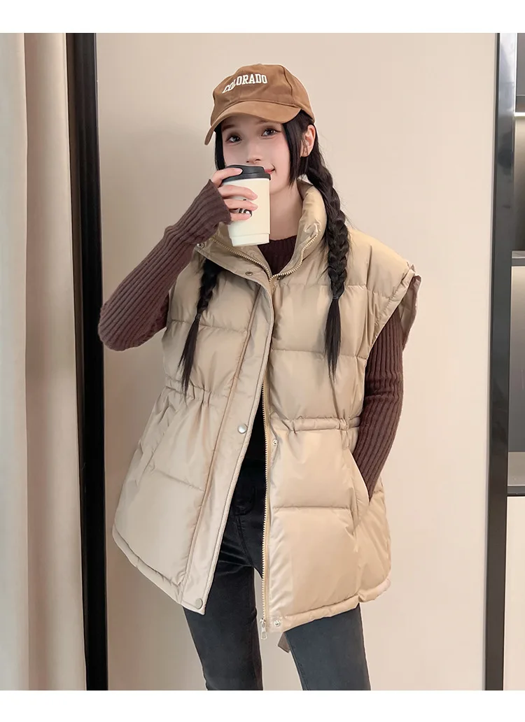 Down Cotton Vest Women Loose Solid Sleeveless Jacket Coat Female Black White Warm Vests Autumn Lightweight Waistcoat Winter