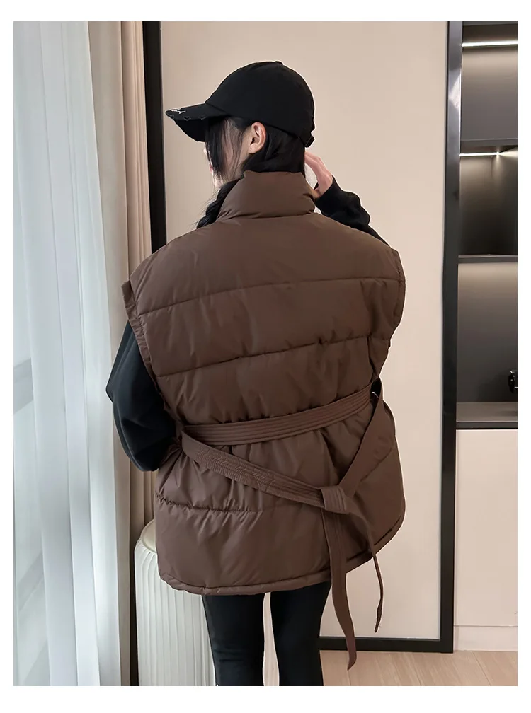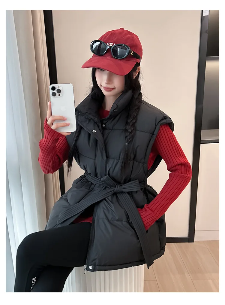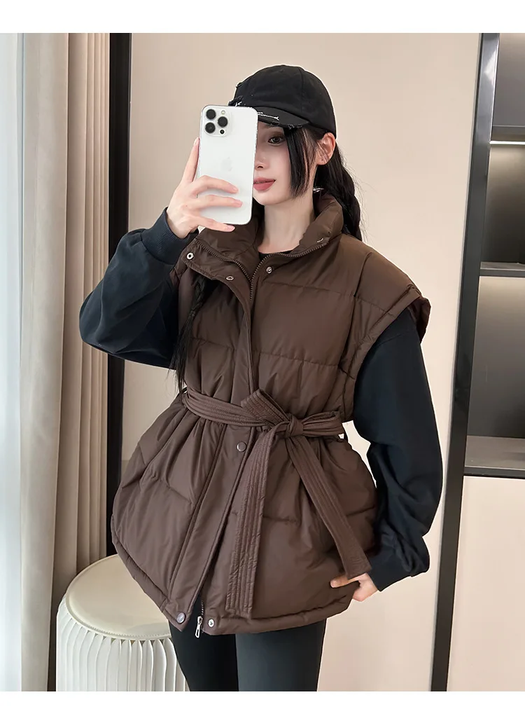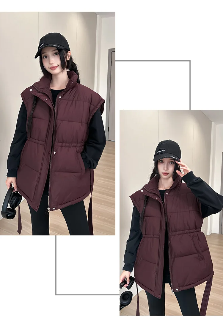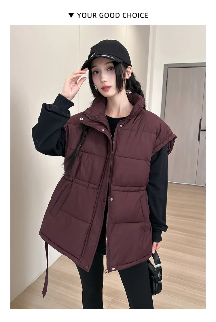 Down Cotton Vest Women Loose Solid Sleeveless Jacket Coat Female Black White Warm Vests Autumn Lightweight Waistcoat Winter