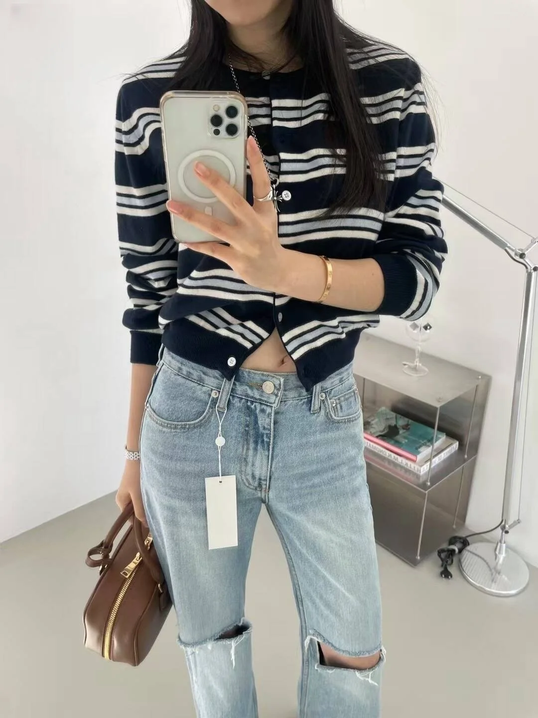 Be the first to review “Chic Spring New Classic Striped round Ne Button up Knitted Open Cardigan Soft Color Blo Design Women’s”