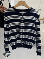 Chic Spring New Classic Striped round Ne Button up Knitted Open Cardigan Soft Color Blo Design Women's Sweater