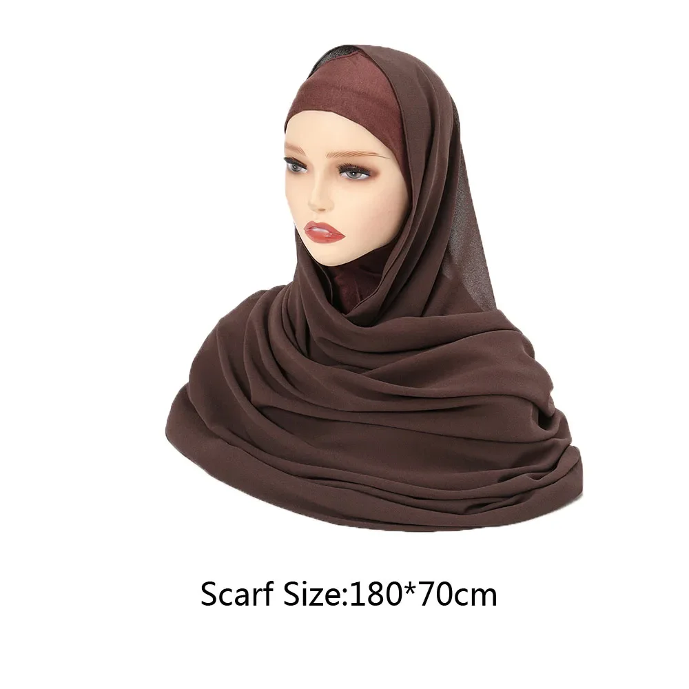 Chiffon Hijab Sets With Matching Color Cap Women Scarf Shawl Scarves Underscarf Jersey Inner Caps High