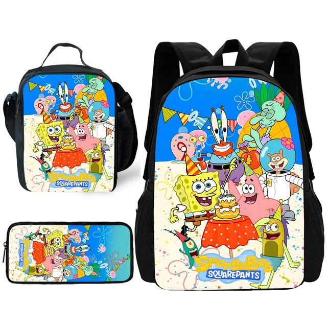 Child Cute Anime SpongeBobs School Backpack with Lunch Bags ,Pencil Bags ,School Bags for Boys Girls