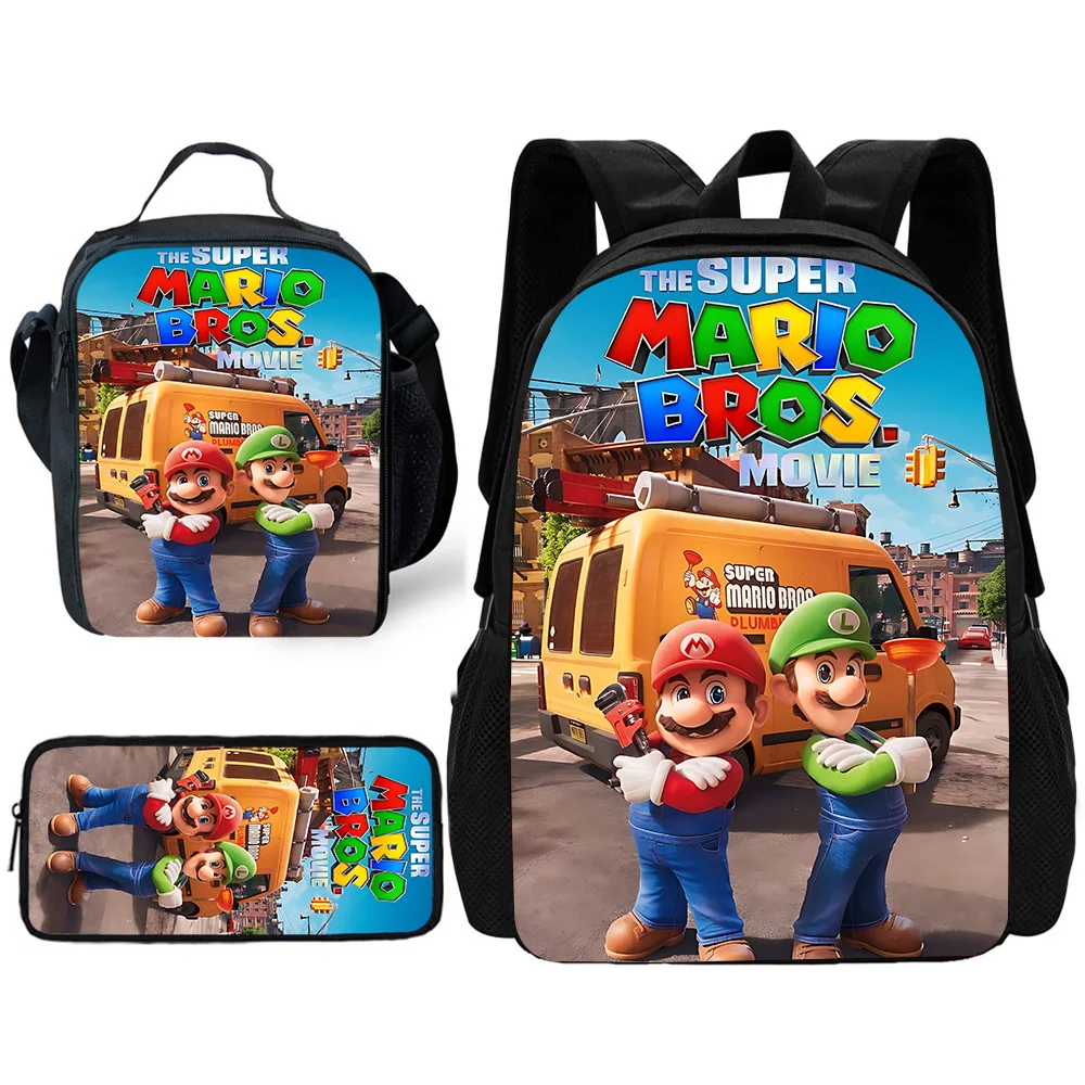 Child School Anime Game Crazy M-M-Marios Backpack with Lunch Bags ,Pencil Bags ,School Bags for Boys