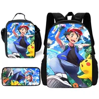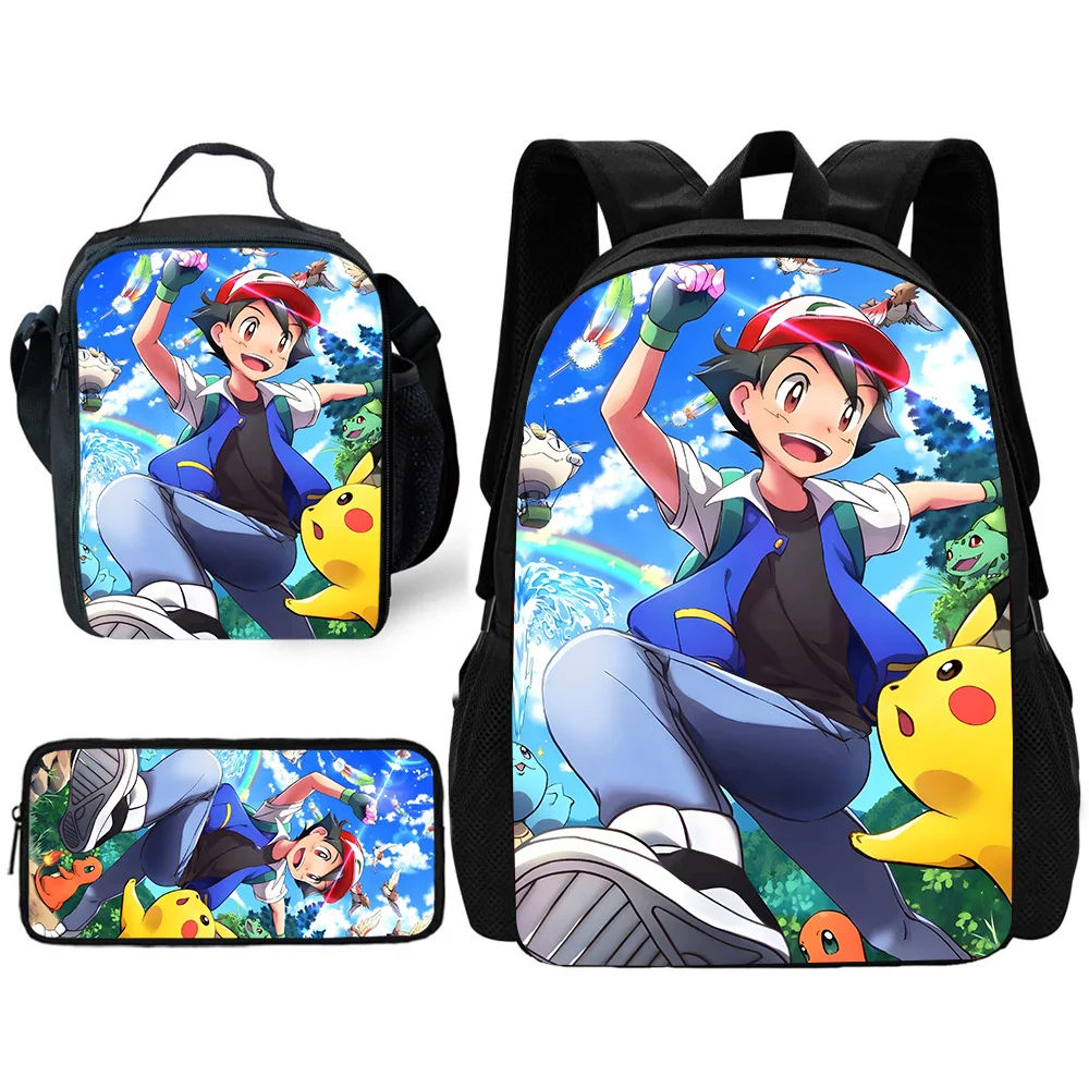 Child School Anime Pikachus Backpack with Lunch Bags ,Pencil Bags ,School Bags for Boys Girls Best Gift