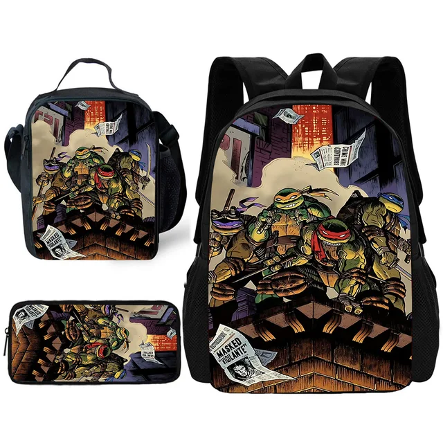 Child School Backpack with Lunch Bags Pencil Bags For Anime Game N-ninjas Turtless School Bags for Boys
