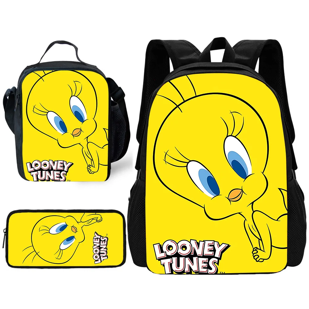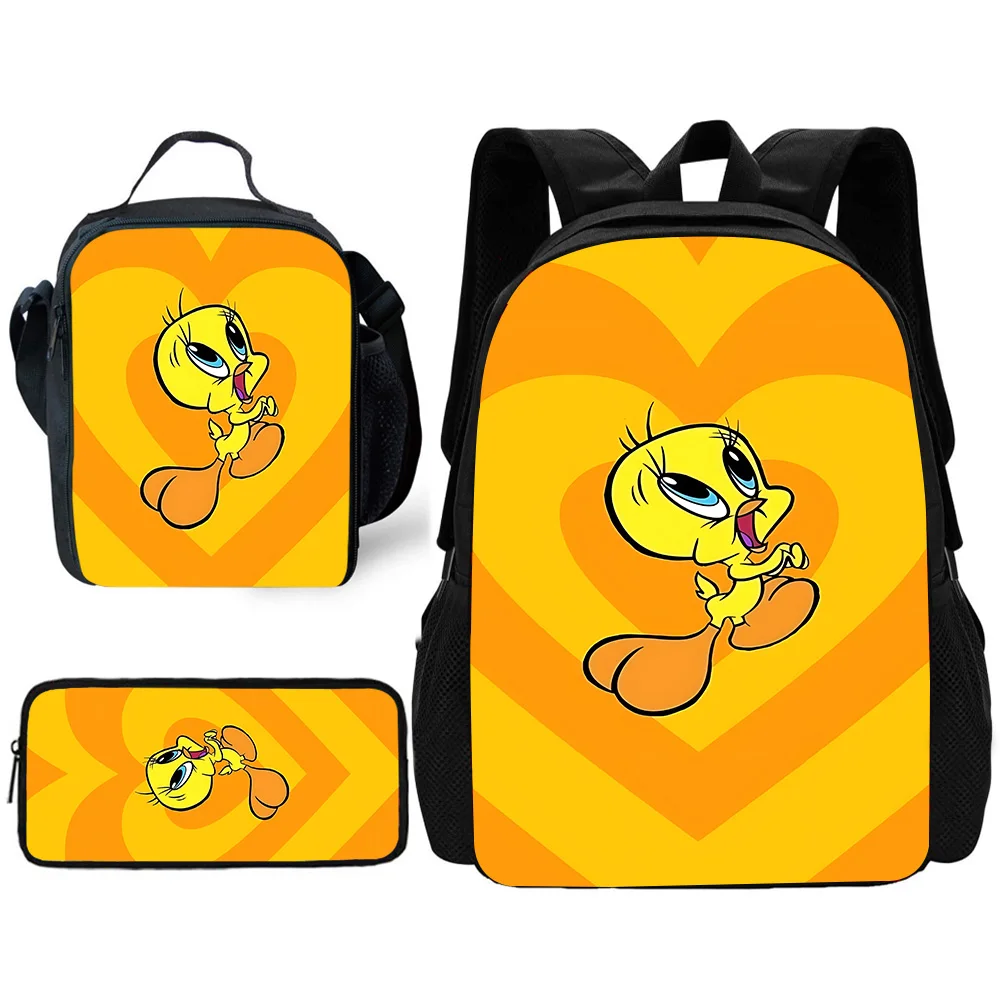 Child School Cartoon Cute Tweetys bird Backpack with Lunch Bags ,Pencil Bags ,School Bags for Boys Girls