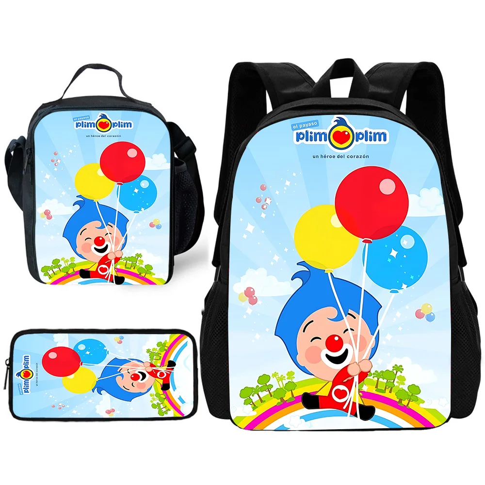 Child School Cartoon P-Plims Plim Backpack with Lunch Bags ,Pencil Bags ,School Bags for Boys Girls Best