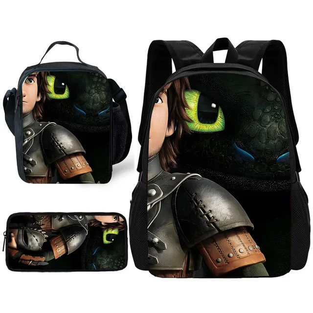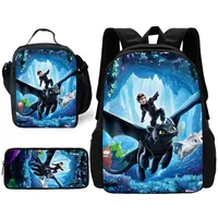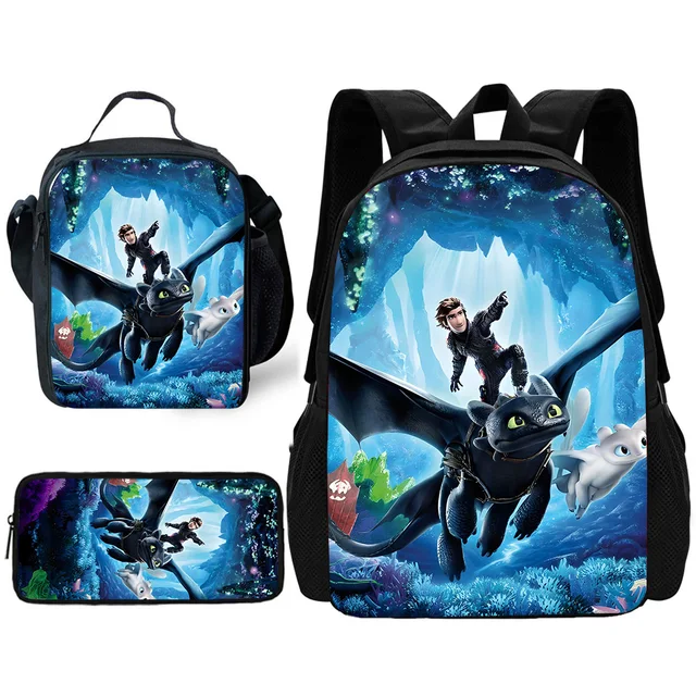 Child School Cool Popular Anime Toothless Backpack with Lunch Bags ,Pencil Bags ,School Bags for Boys