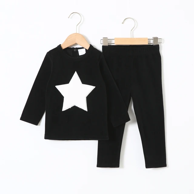 children clothes 2pcs set velour kids clothes baby boy clothes girls clothes round neck long pants heart star children set 2-5T